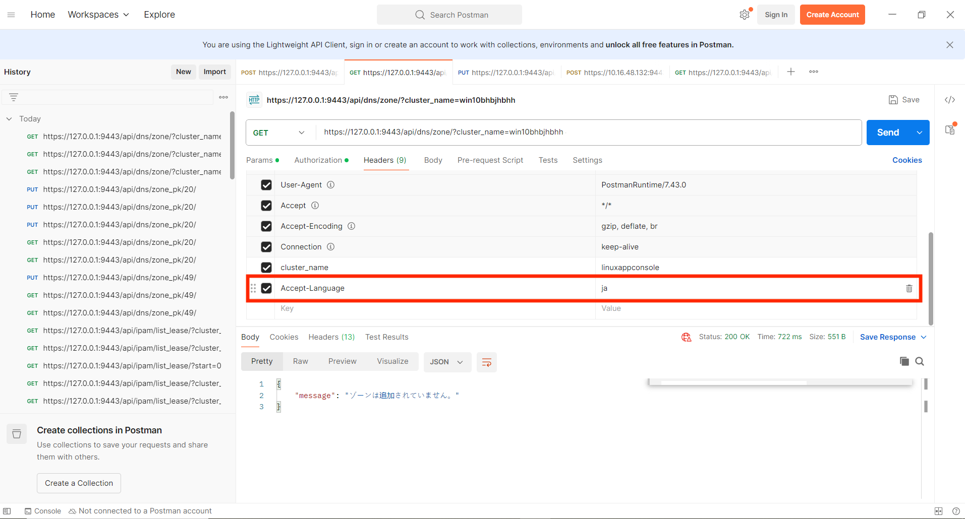 As highlighted in the image above, "ja" (Japanese) is set as the language preference. Therefore, the API will return responses in Japanese if localization is supported.