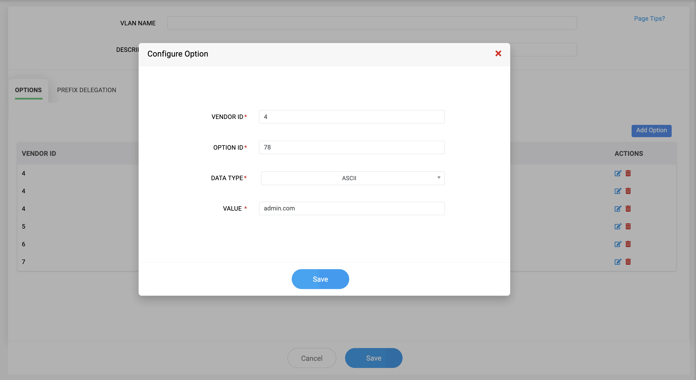 OPTION ID: Provide the option ID for implementing the configuration. The option ID ranges from 0 - 254 for DHCPv4.