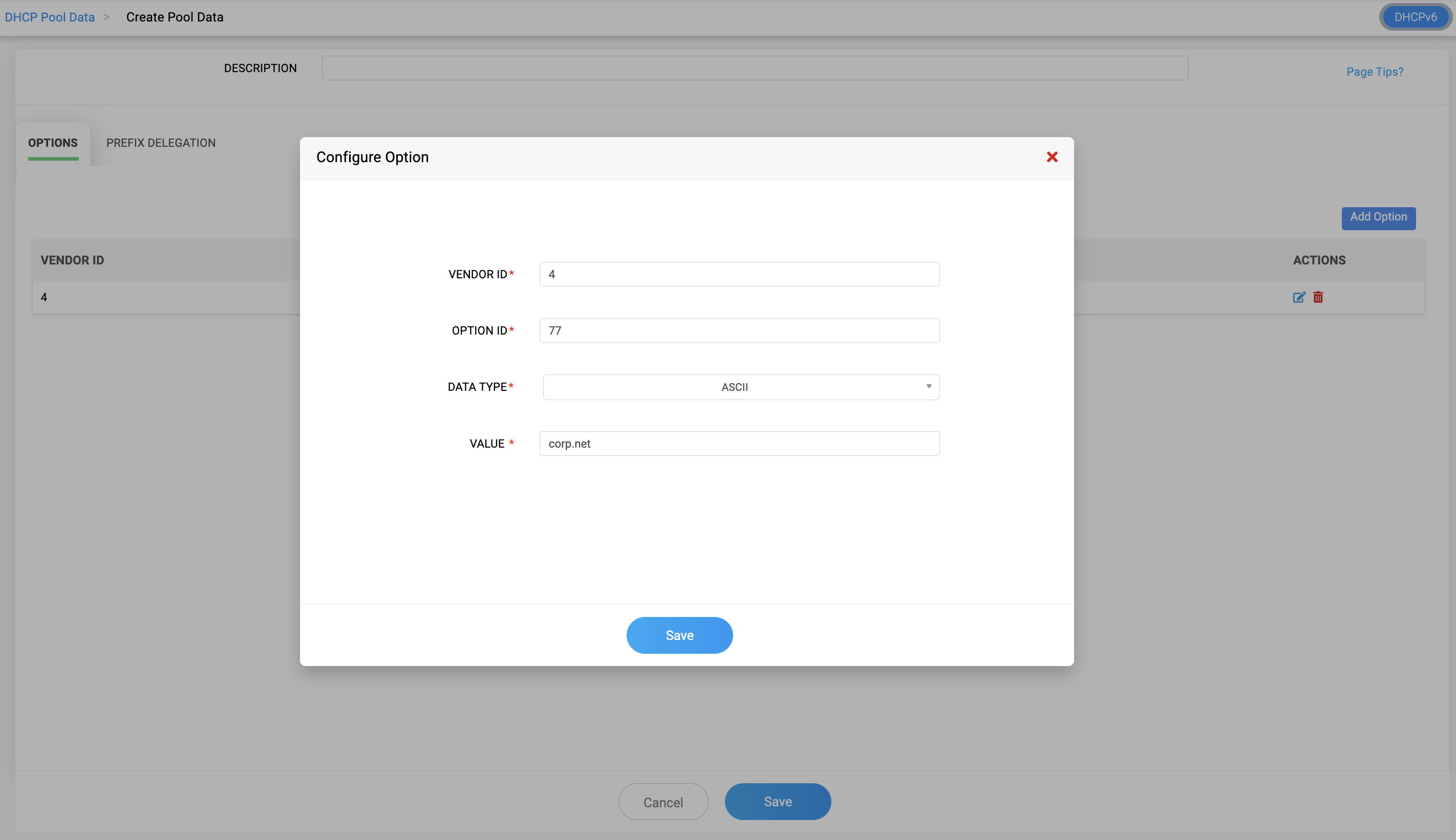 In DHCPv6, the fields for adding DHCP pool data differs,