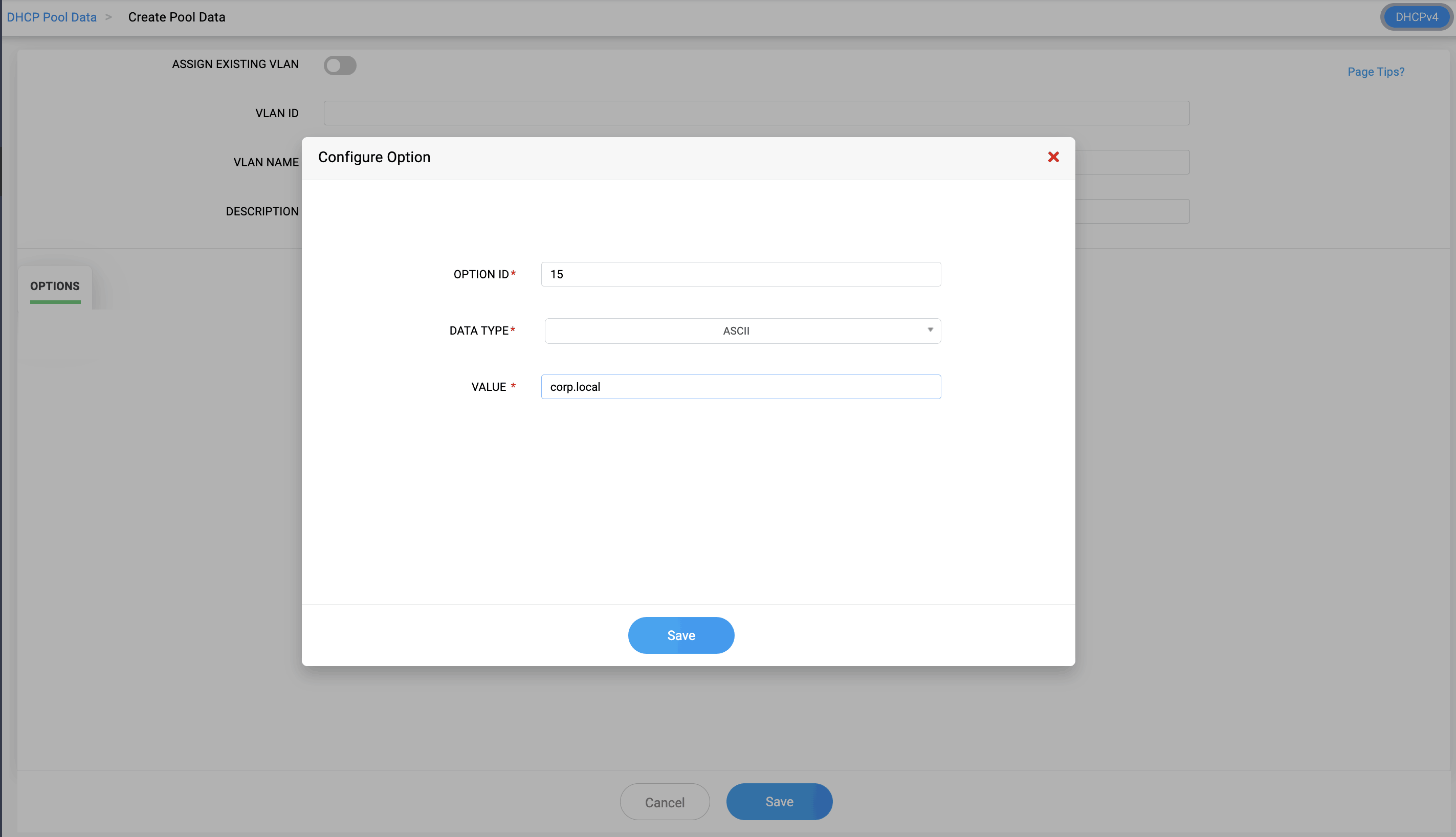 OPTION ID: Provide the option ID for implementing the configuration. The option ID ranges from 0 - 254 for DHCPv4.