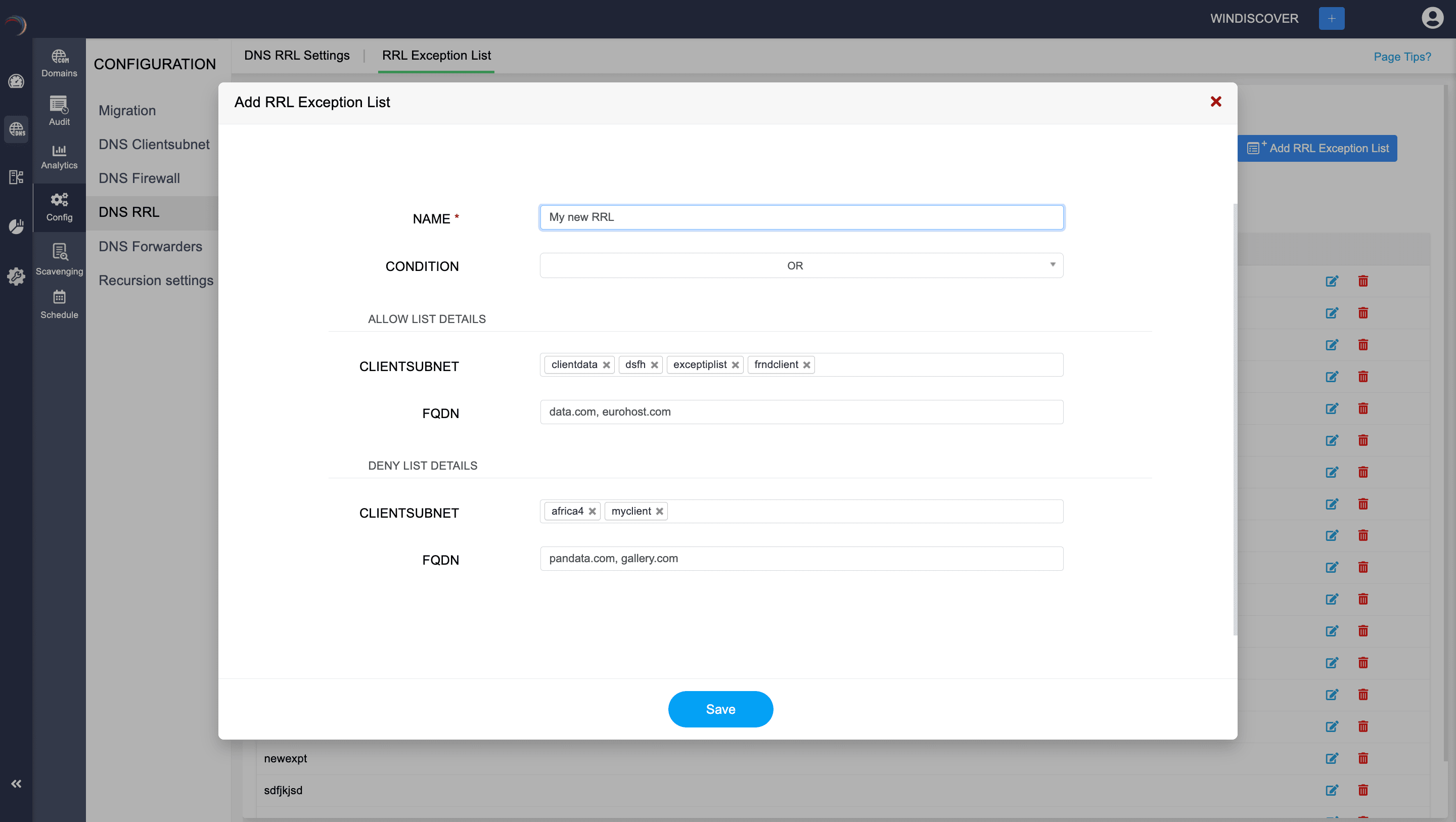 Click Save to apply the exception list settings.By following these steps, you can effectively manage RRL exceptions in Microsoft DNS, ensuring that trusted clients and critical services are not impacted by rate limiting, while still protecting your DNS infrastructure from potential abuse.