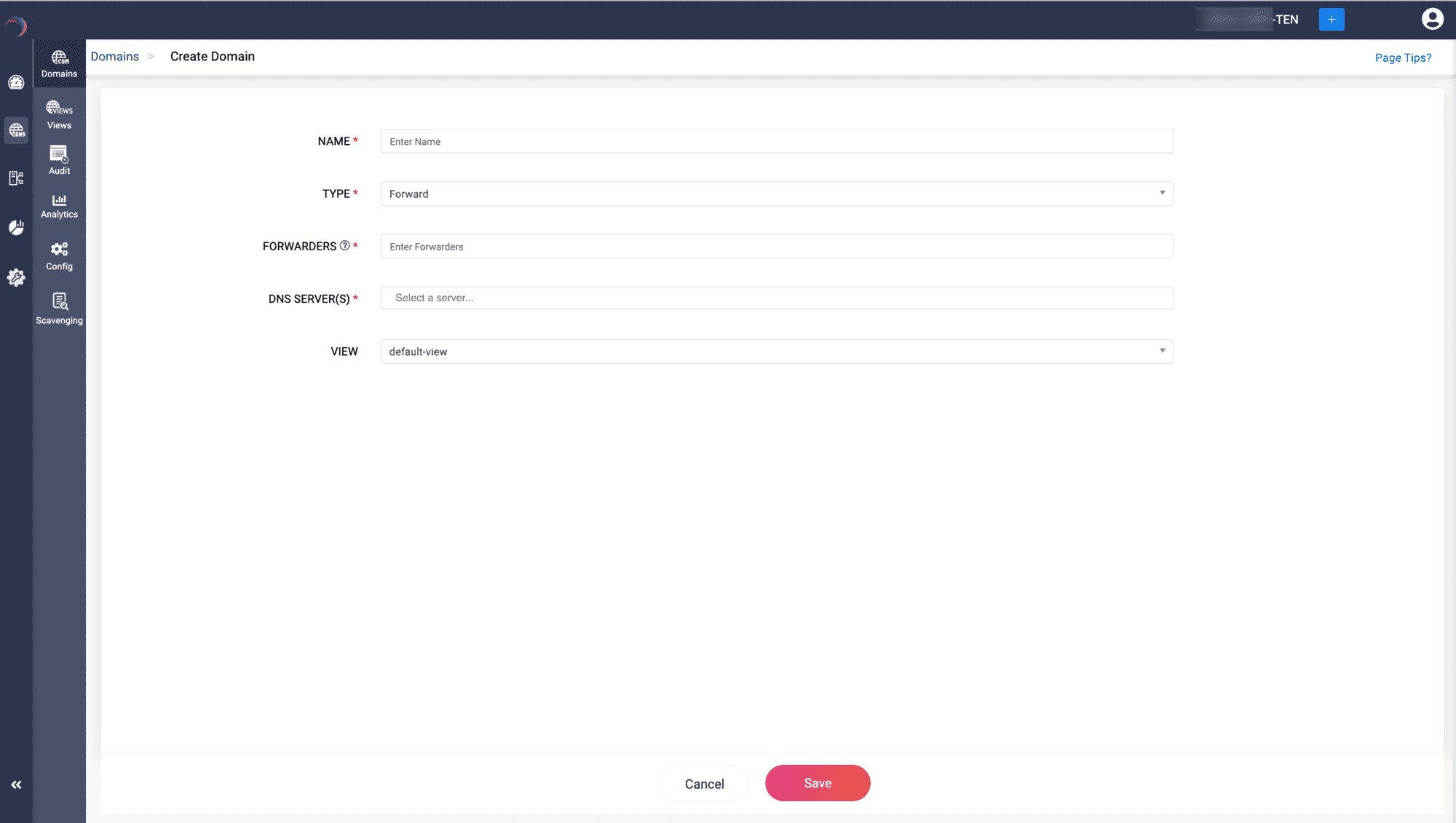 - VIEW: Allows you to select a DNS view, which can provide different data responses based on the source of the DNS query. You can configure views for Forward Zones in DDI Central . This would allow you to specify different forwarding behaviors based on the client making the request. For example, internal clients may be forwarded to an internal server, while external clients are forwarded to a public DNS service.