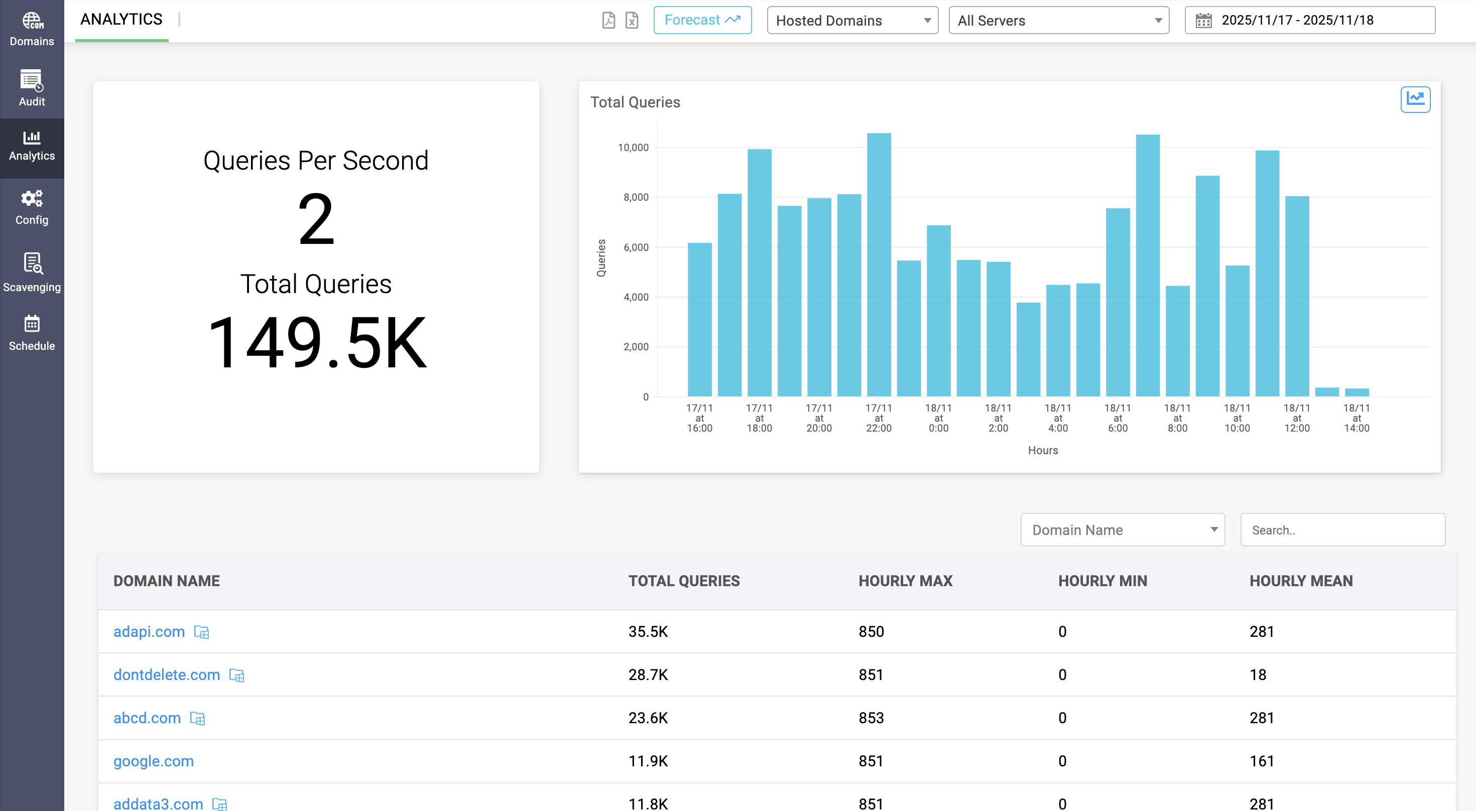 • Note: Admins can view forecasting for overall queries and queries of hosted domains separately.