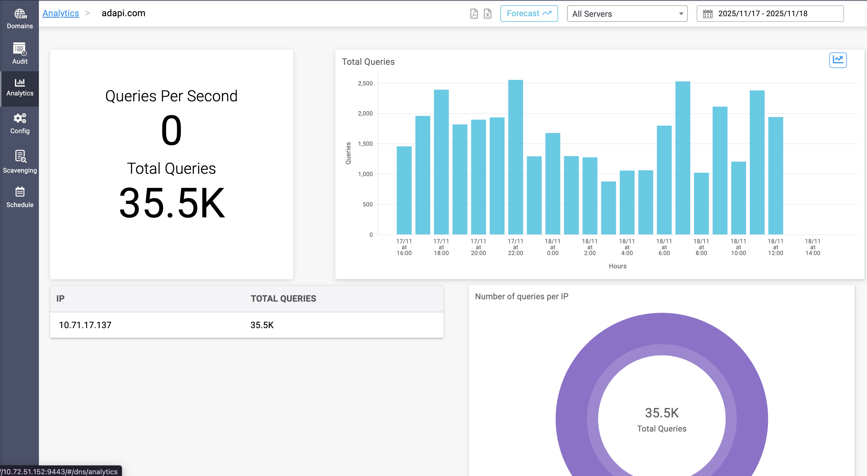 Forecasting for DNS can be viewed by clicking on the Forecast option on the top right menu in Analytics page.