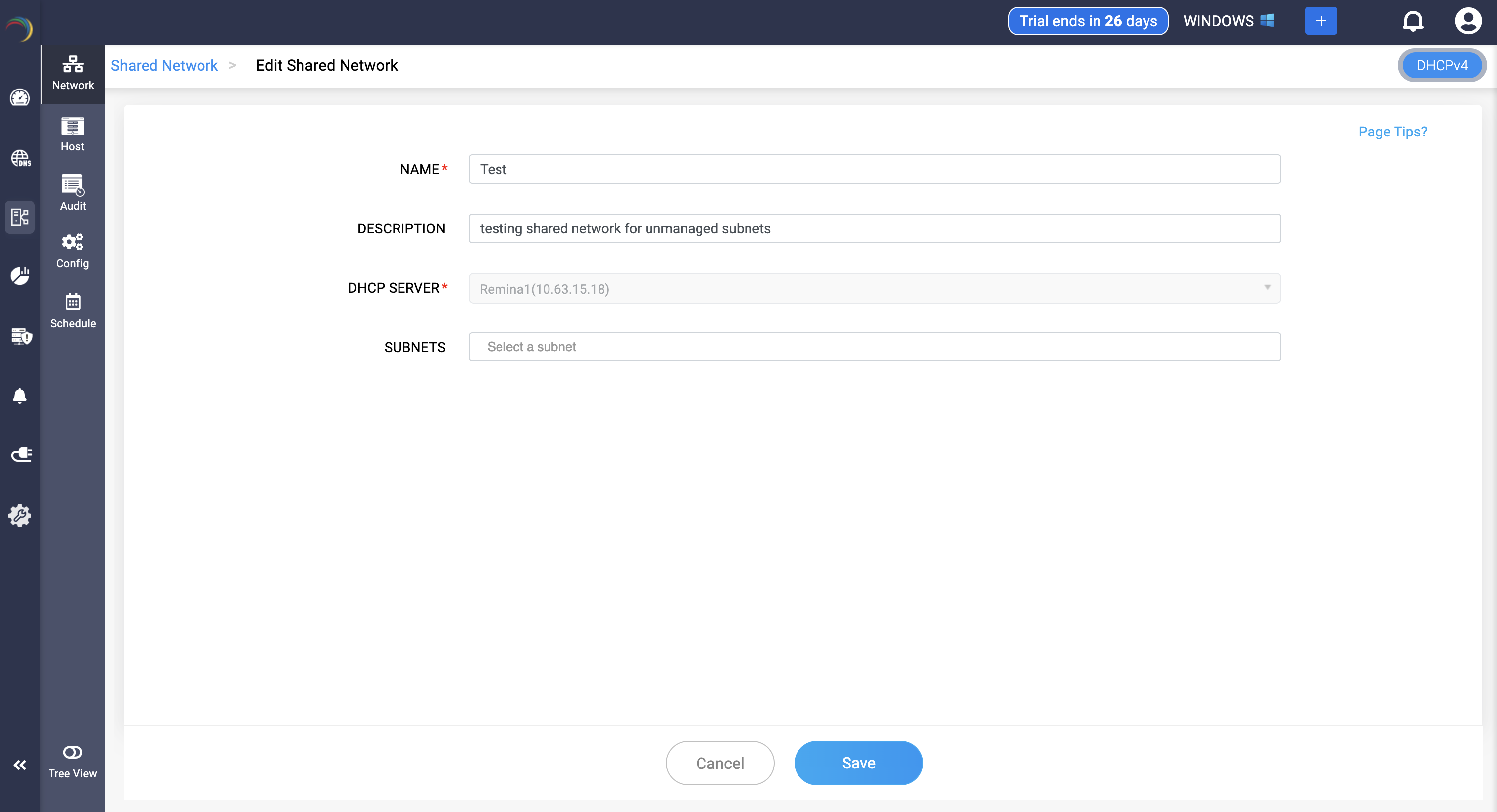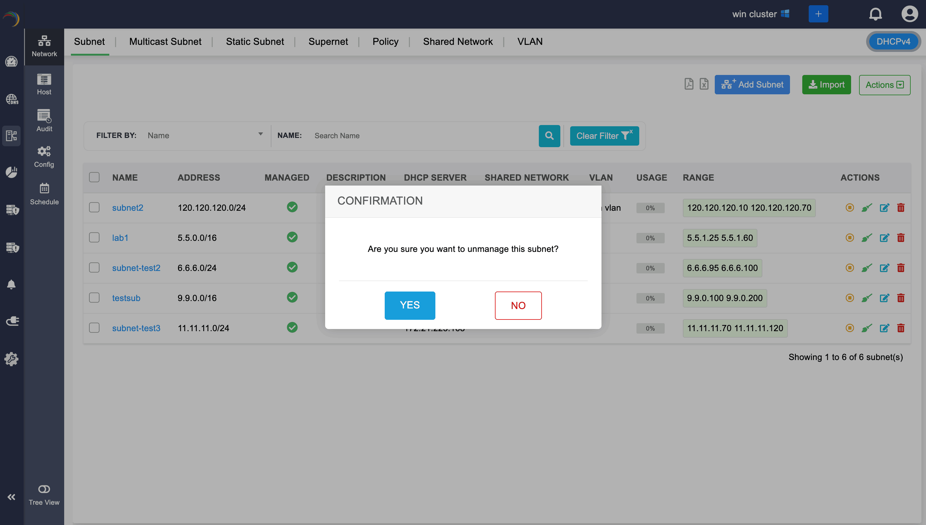 When an unmanaged DHCP subnets are associated with a specific shared network, the subnets will be displayed within the shared network page for reference.