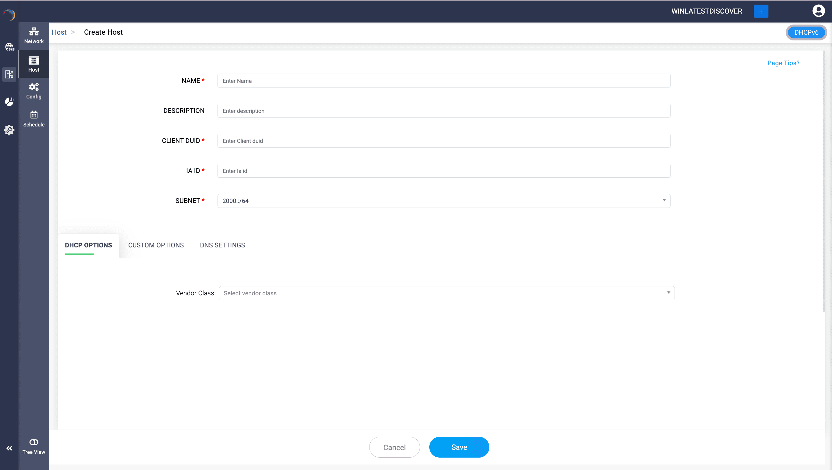 To create a DHCPv6 based host, just specify additional details like: