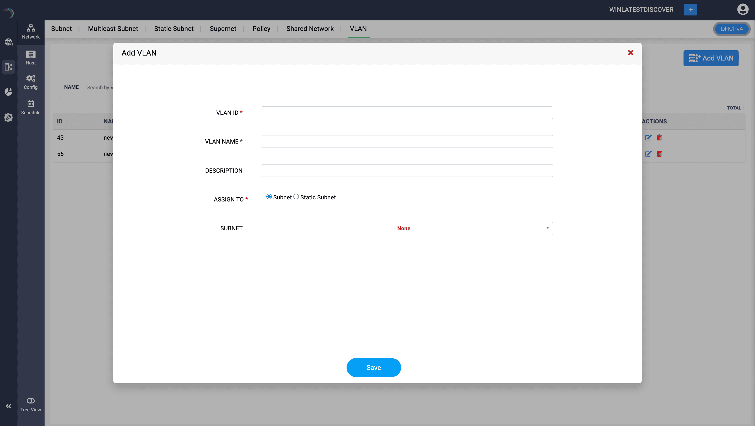 Based on your choice in the Assign to field you can choose the relevant Subnet or Static subnet from the drop down list and Click Save to create the VLAN.