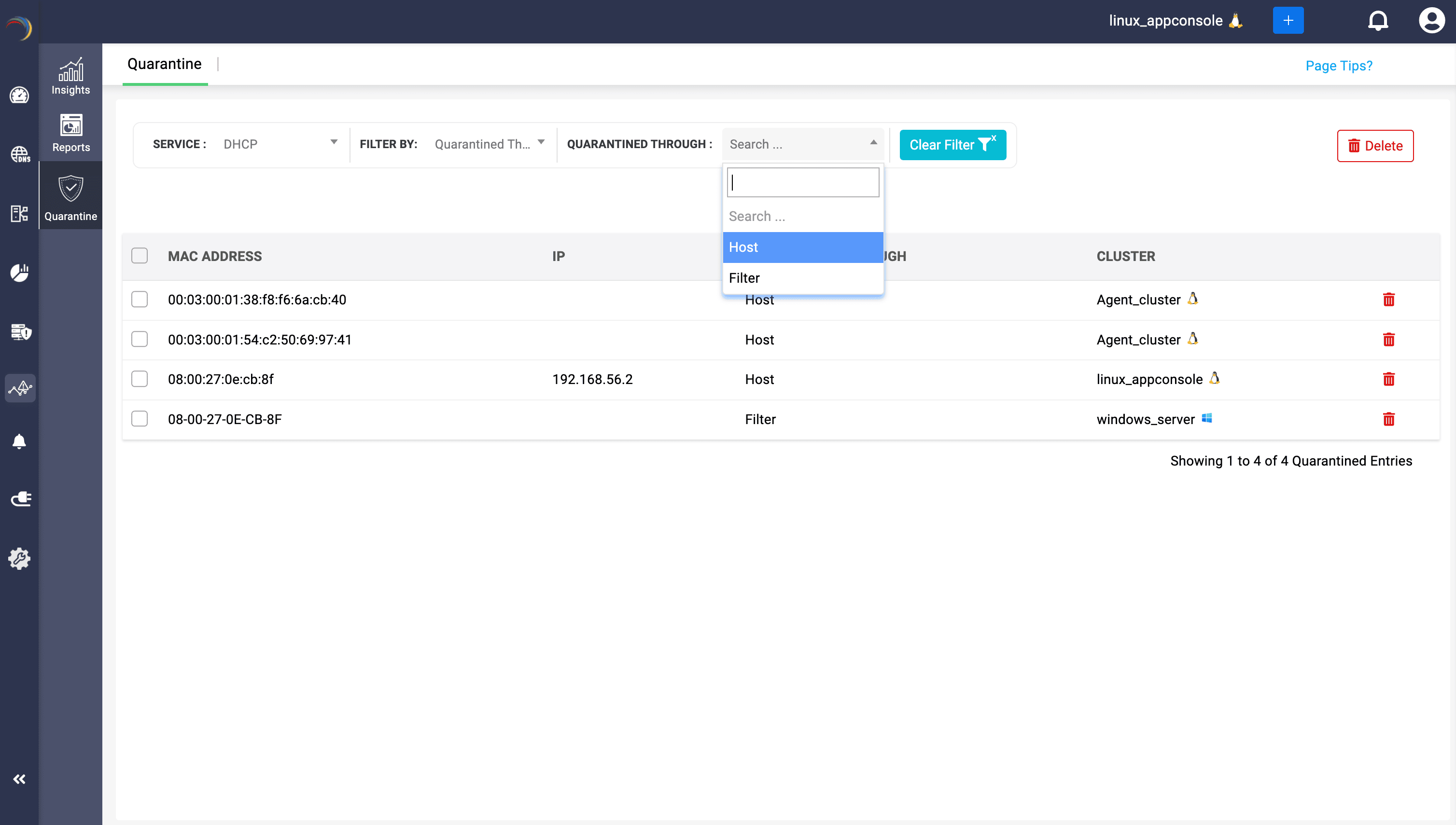 - ✔ Apply filters to segment DNS and DHCP quarantines
