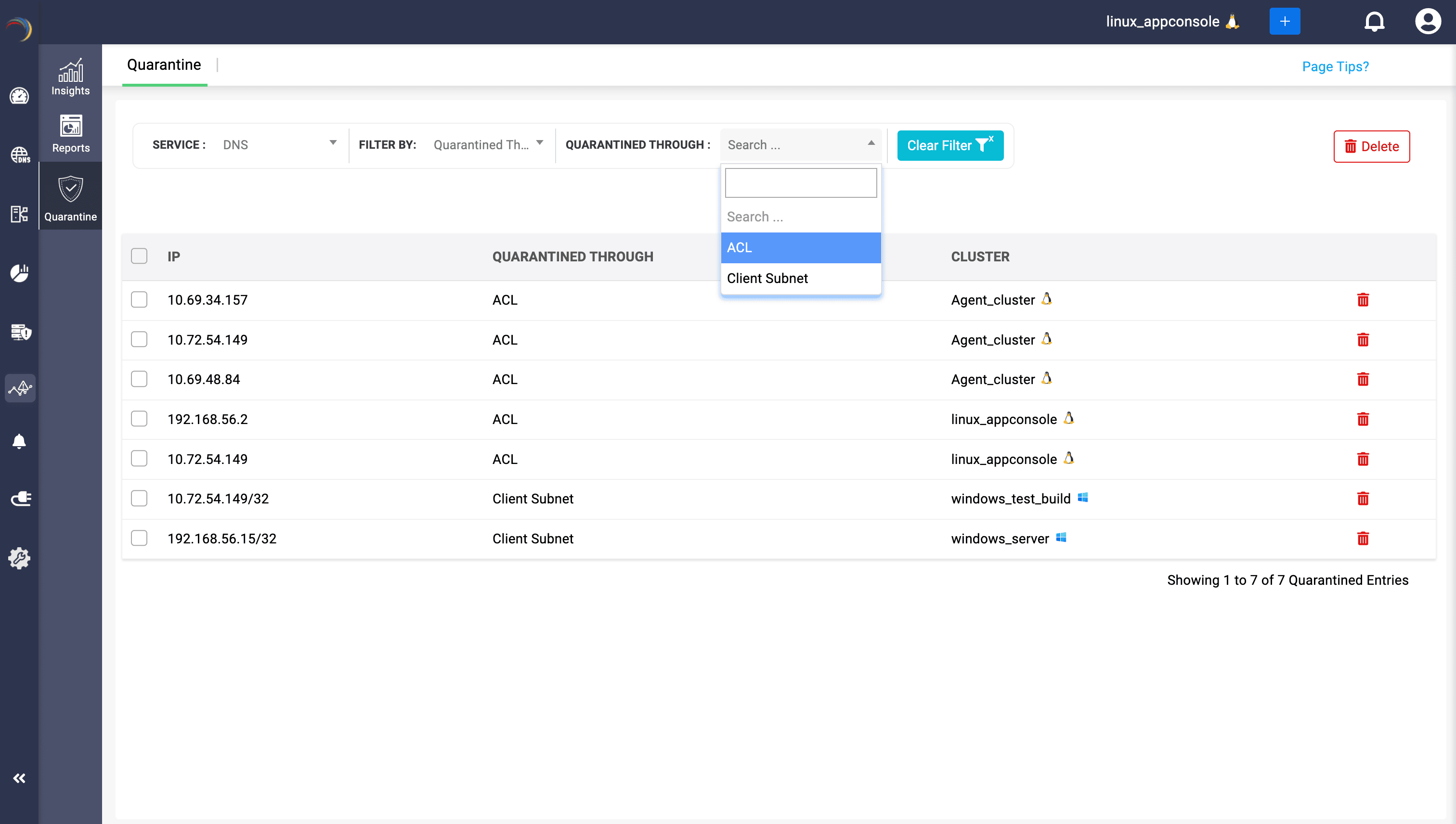- Quarantined Through (ACL / Client Subnet / DNS Firewall)