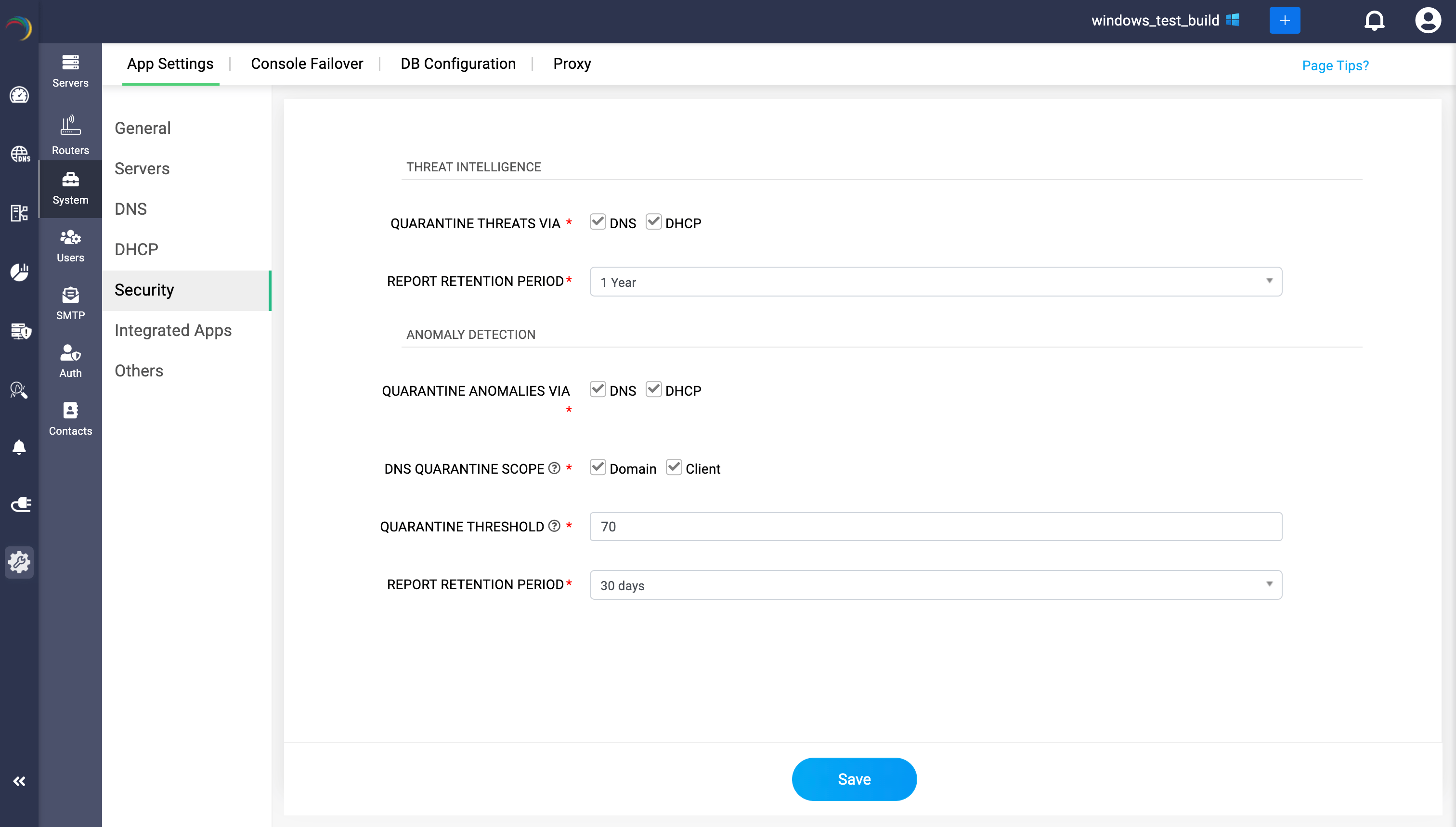 The Quarantine feature in DDI Central’s Anomaly Detection module provides an automated, zero-touch containment layer that isolates suspicious clients and domains as soon as their behavior crosses defined risk thresholds.