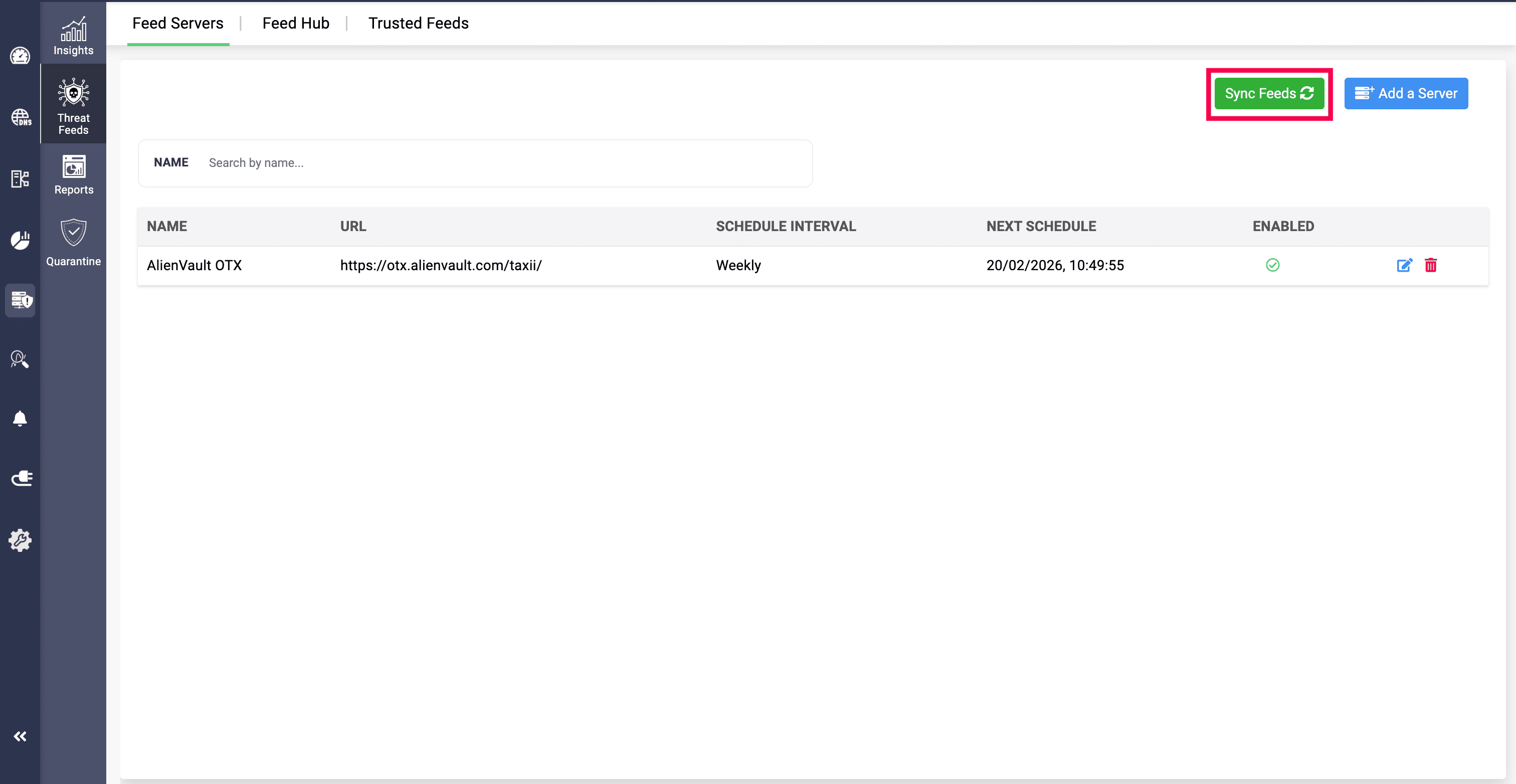 Note: When a trusted feed is deleted from the Trusted Feeds section, it is removed only from that section and will not be deleted from the Feed Hub section.