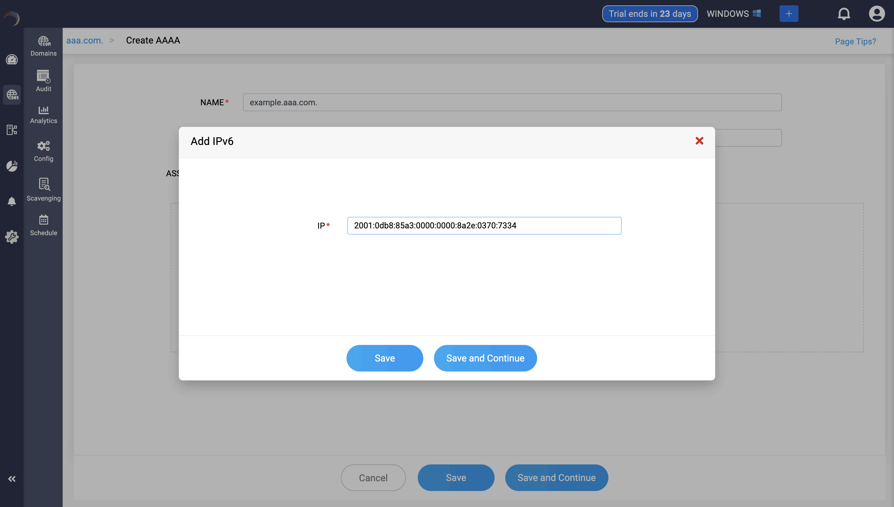 Step 3: Provide the details of the new AAAA record, such as name, TTL, date and time, and IP address.