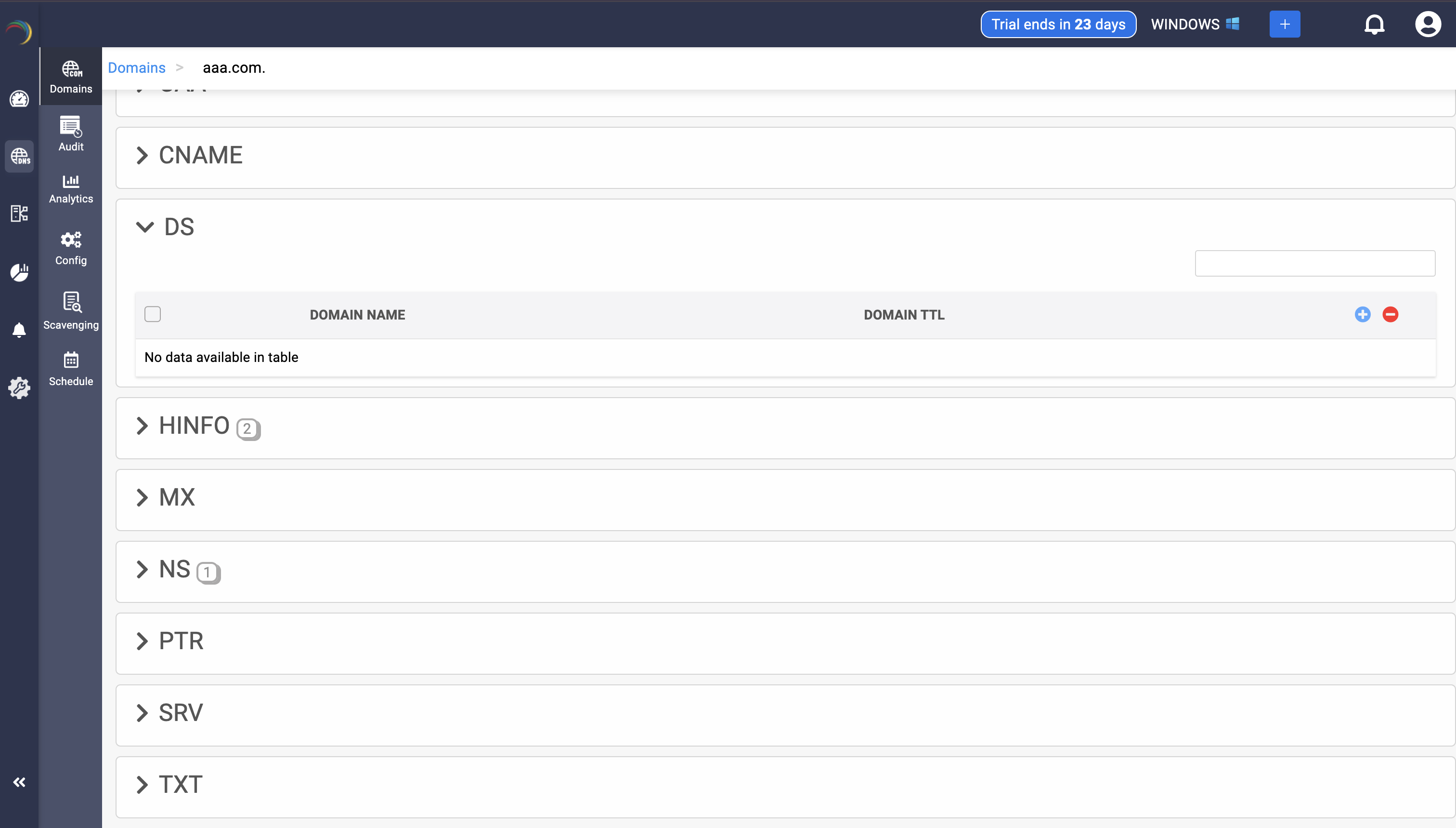 Step 1: Click on the DS record of the DNS zone for a domain.