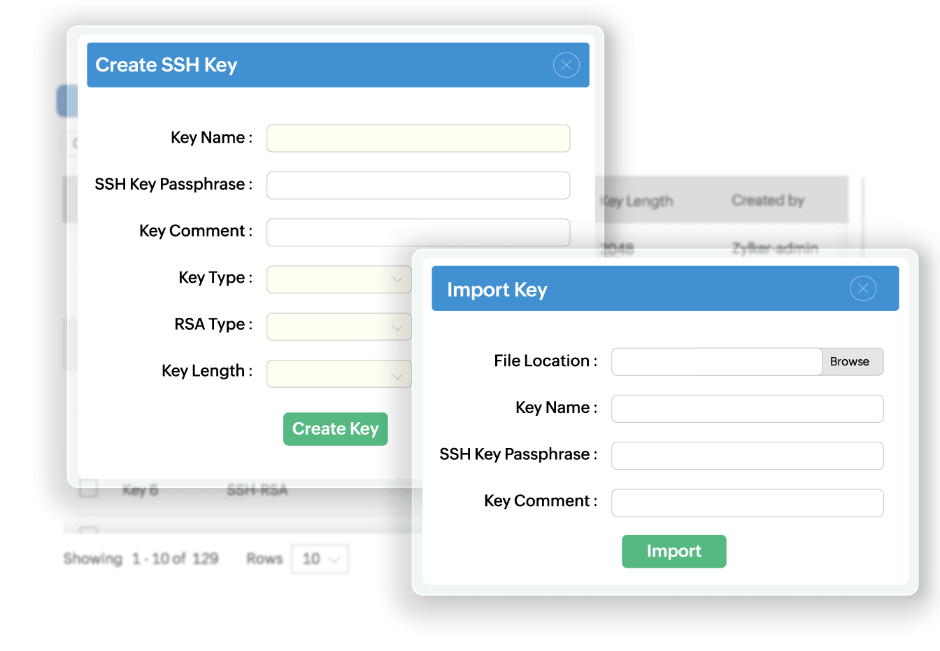 Import all your SSH keys and associated resources in bulk from existing files directly to Key Manager Plus. Further, with Key Manager Plus, you can create new key pairs and deploy them on target systems. Unique key pairs can be generated for each user account and the corresponding keys are deployed automatically on the target servers.