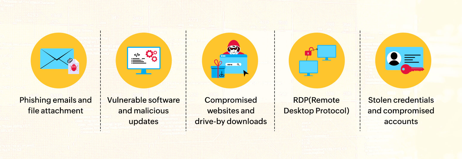 Threat actors scan for exposed RDP ports on the internet and try to get in using stolen credentials or brute-force techniques. Once in, it is easy to disable defenses in the end user's system and drop the malware payload.