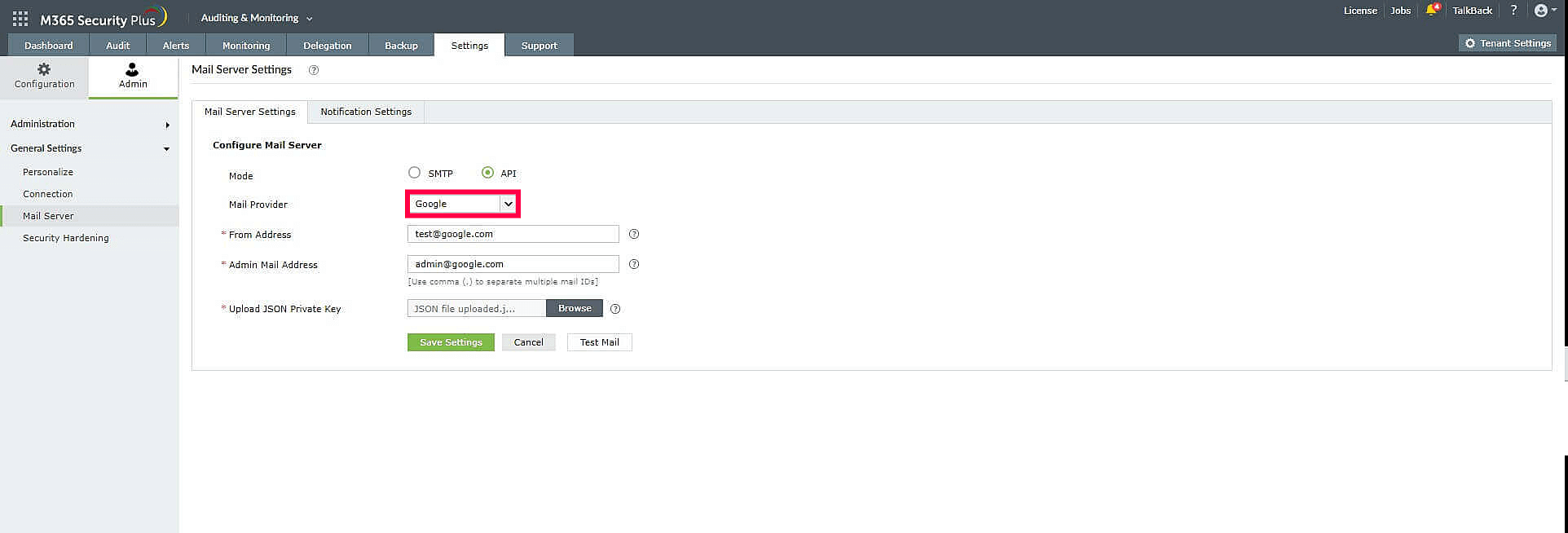 - In the From Address field, enter the email address that will be used to send out notifications, alerts, etc., from M365 Security Plus.