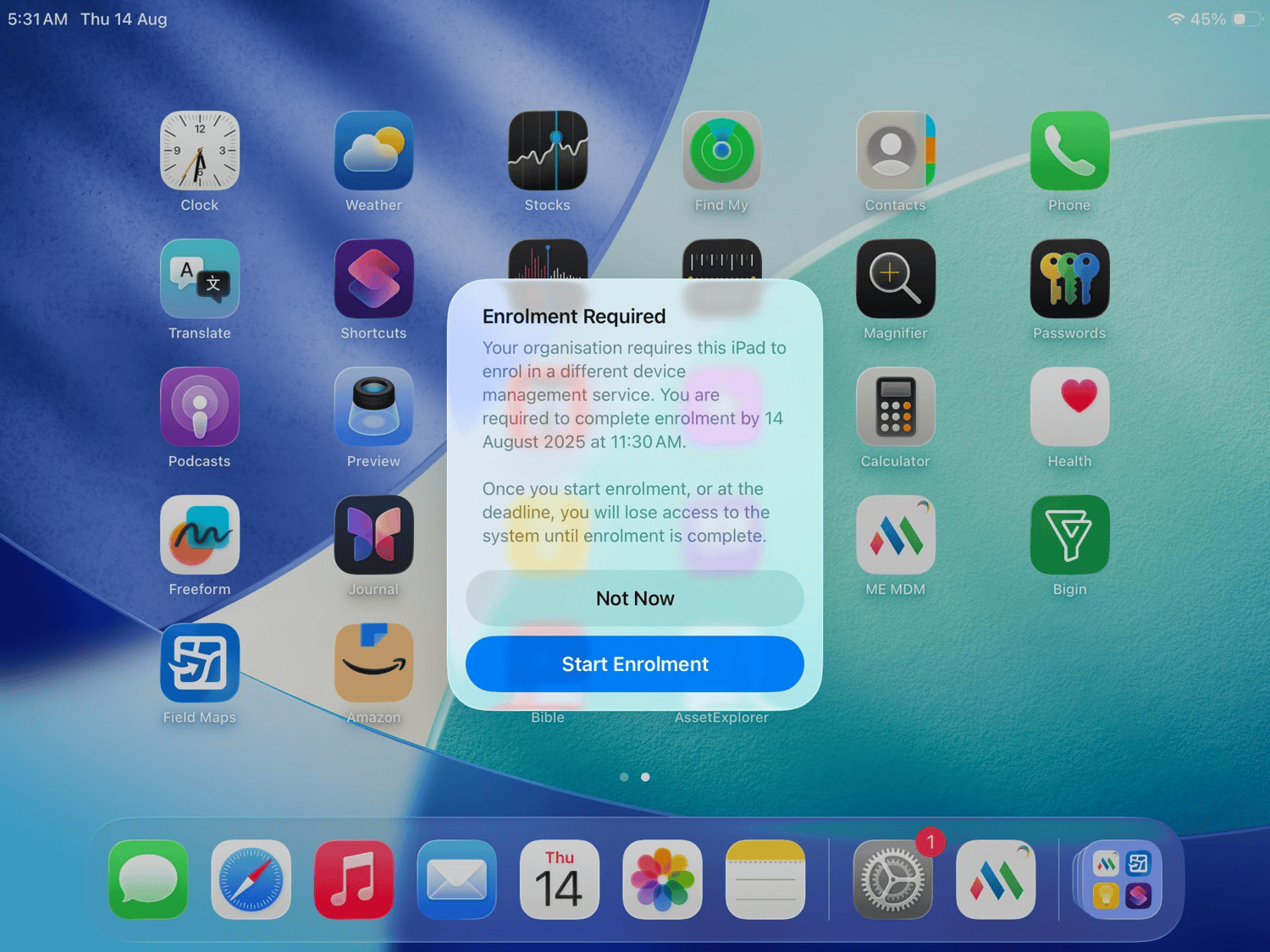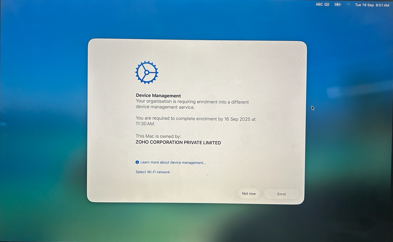 From macOS 26 and iOS/iPadOS 26, Apple introduced a new MDM migration feature integrated with Apple Business Manager (ABM). This makes it possible for IT admins to move devices from third-party MDM solutions to ManageEngine MDM smoothly, with minimal impact on users.