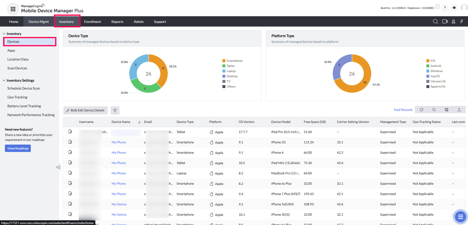 - Prepare a clear blueprint of all devices, including device model, OS version, ownership type (corporate or user-owned), etc.,