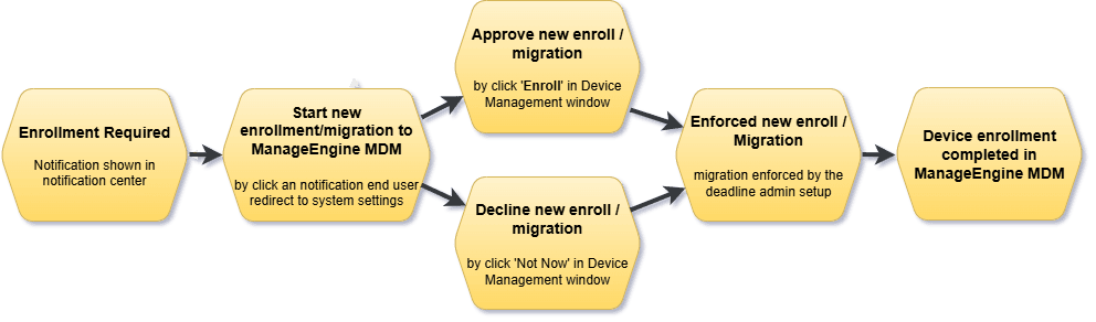 - In the Device Management window, the user clicks Enroll. If the user clicks Not Now, migration is postponed.