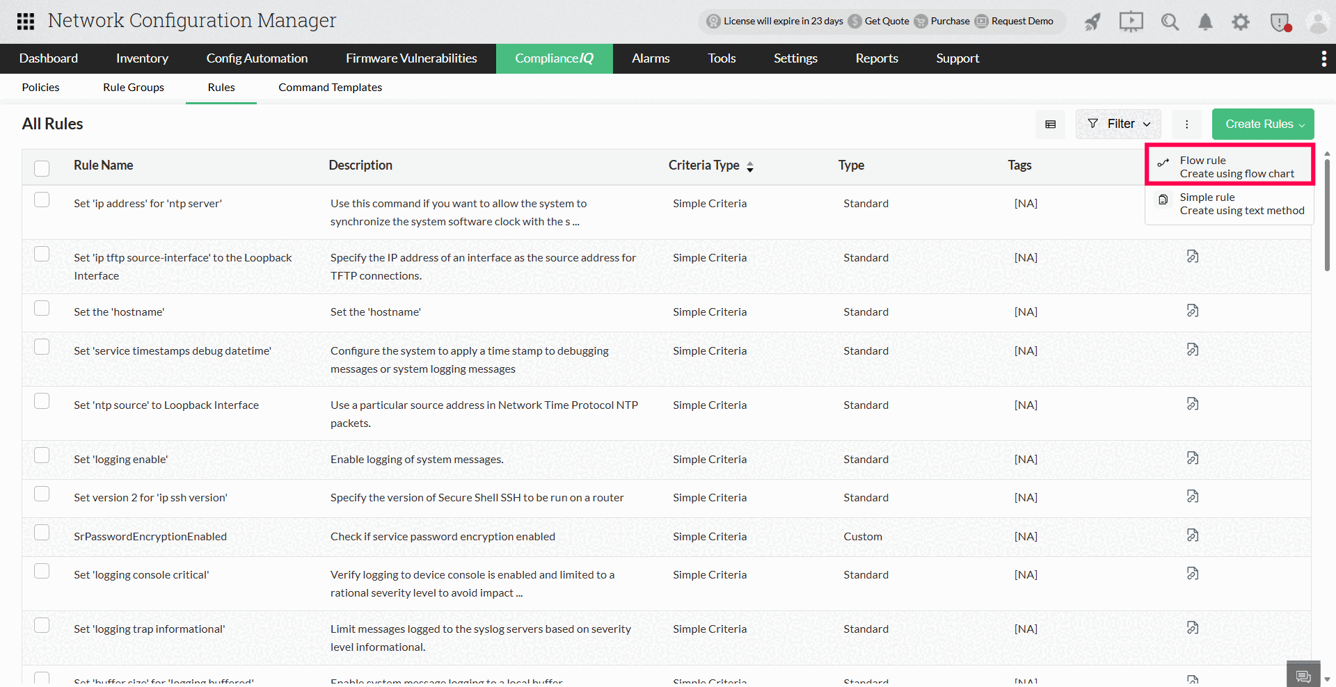ComplianceIQ Rule Configuration - Network Configuration Manager