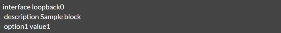 • Start block alone - When the user only enters the start block (example: interface), the text till the next start block keyword (interface) will be considered a block.
