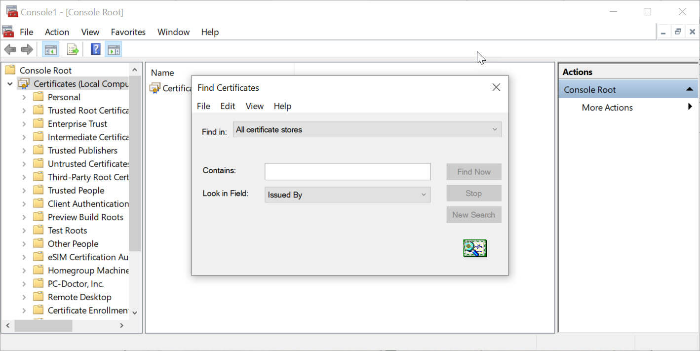 - Select Certificates (Local Computer) >> Personal >> Certificates.