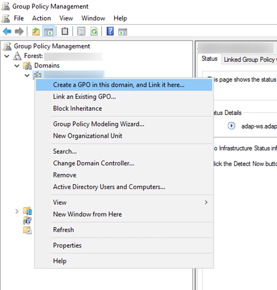 1. Right-click the domain or organizational unit (OU) that you want to audit, and click Create a GPO in this domain, and Link it here. If you have already created a Group Policy Object (GPO), go to step 4.