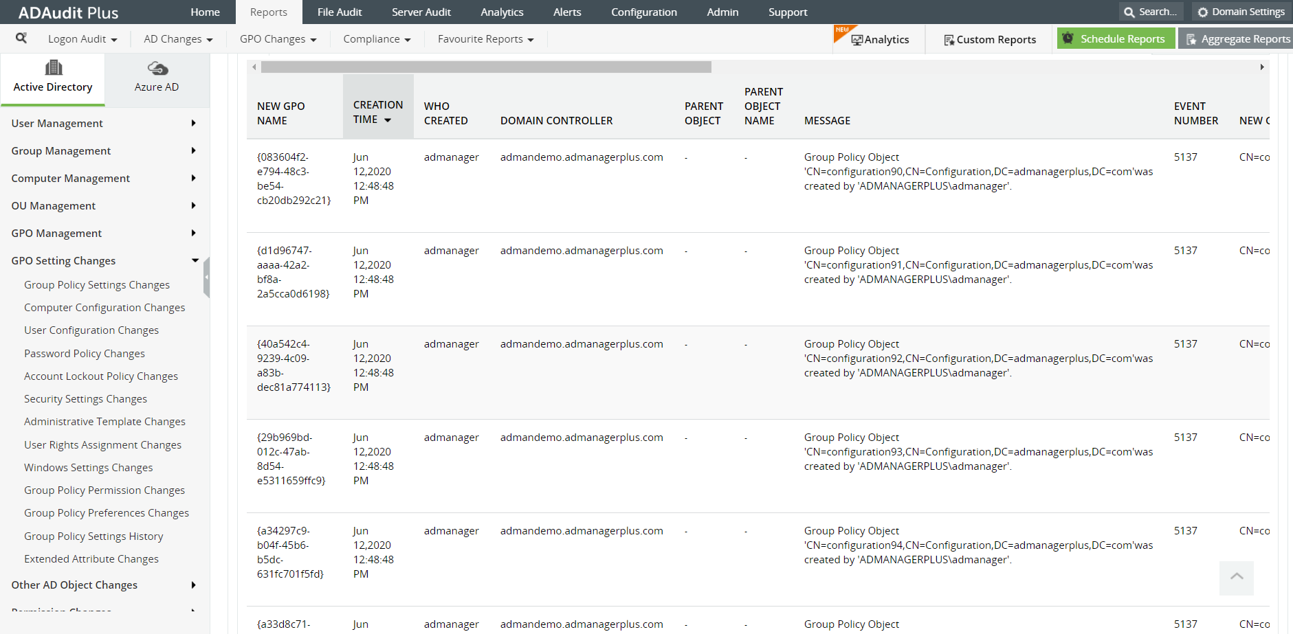 Image: The 'GPO management' reports in ADAudit Plus