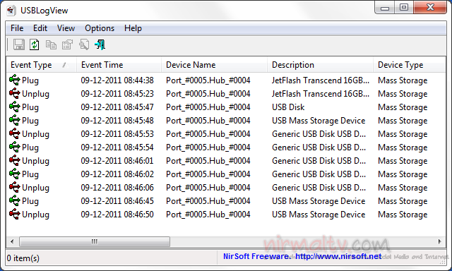 USBLogView is a *freeware that runs in the background and records all activities related to USB devices, such as the plugging and unplugging of any USB devices.