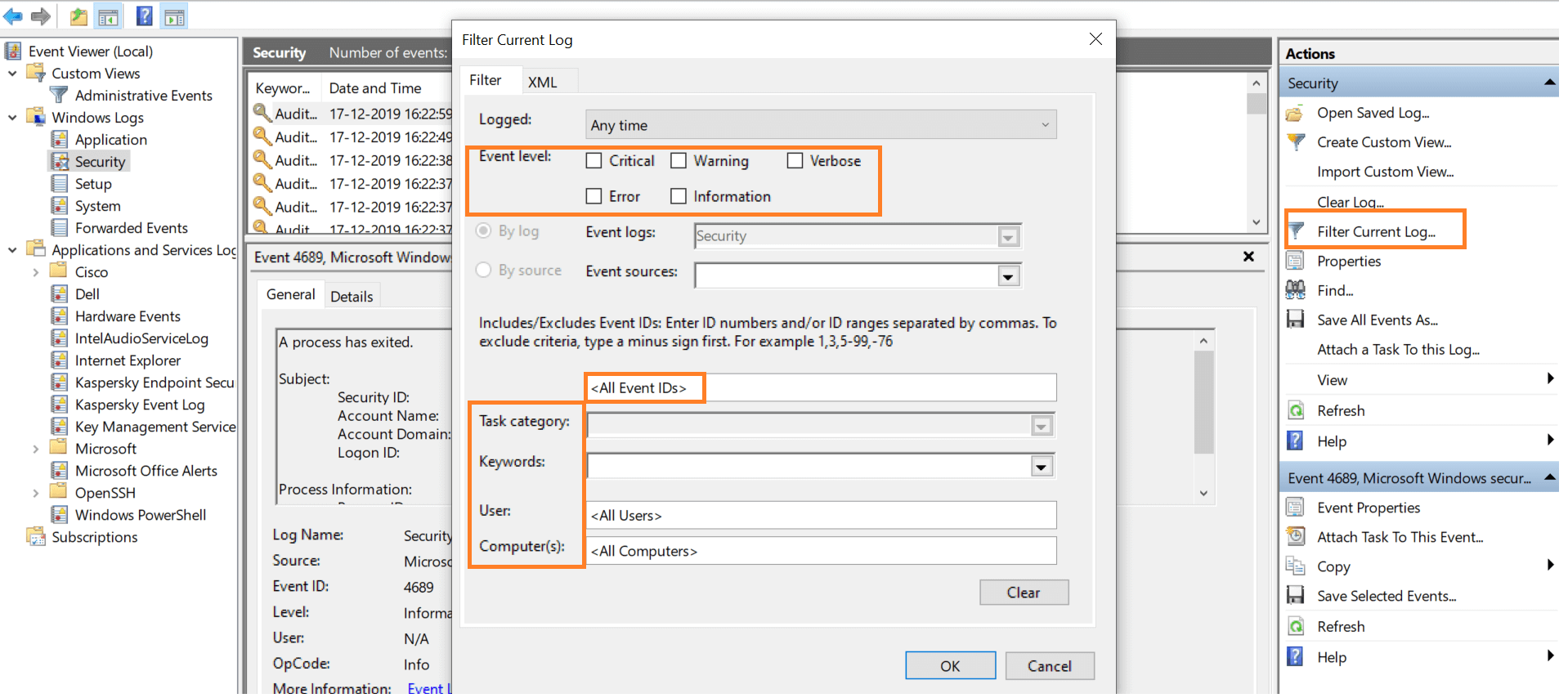 - Step 4: Select the type of AD audit logs that you wish to view (ex: Application, System, etc.).