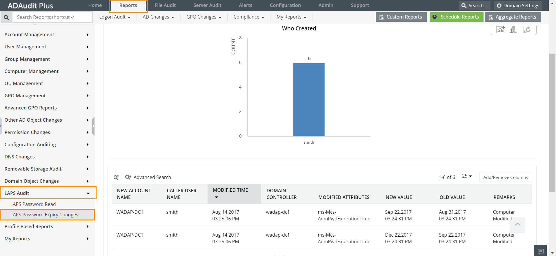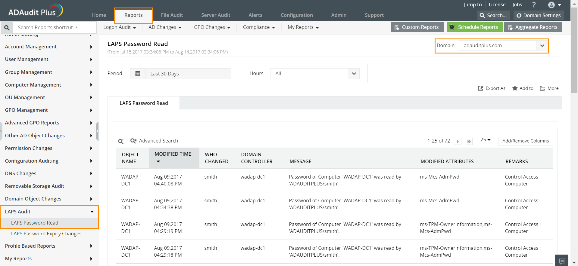 Simplify LAPS auditing and reporting with ADAudit Plus.