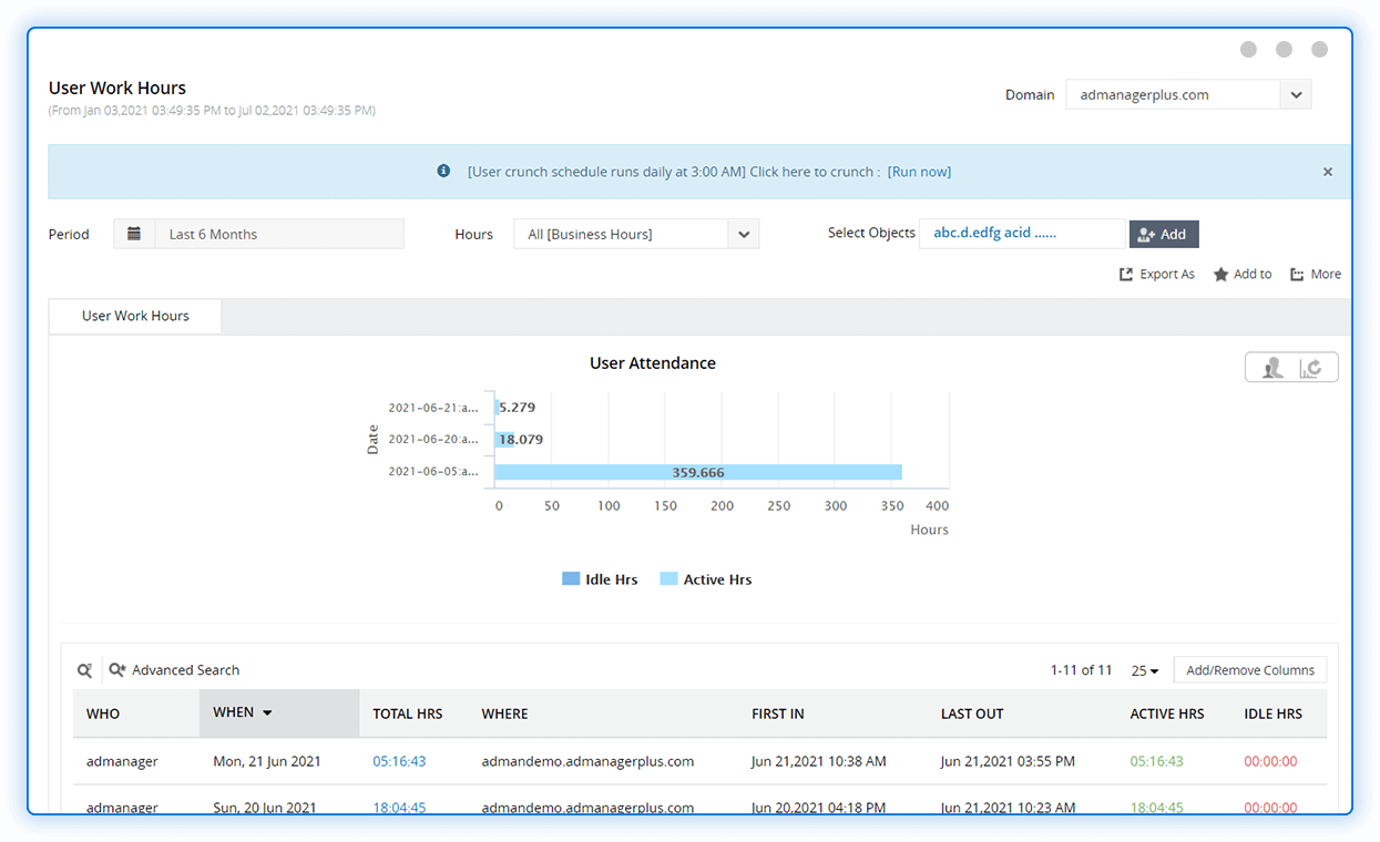 Easily track employees' logons (both local and remote), computer startups and shutdowns, and more for effective timekeeping across your organization.