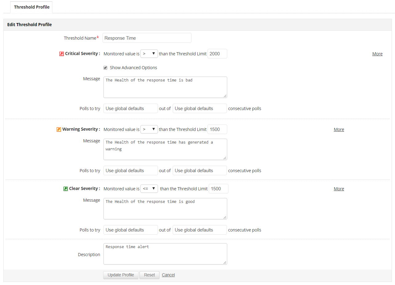 With Applications Manager MongoDB database monitoring, get notified of all performance issues and troubleshoot faster with root cause analysis that enables database administrators to find the origin of the problem with ease. Setting threshold values will help prevent performance bottlenecks and resource saturation. Using Applications Manager MongoDB performance monitoring tool, configure thresholds for important metrics and get alerted when they are breached, and set up actions for the same based on the order of severity.