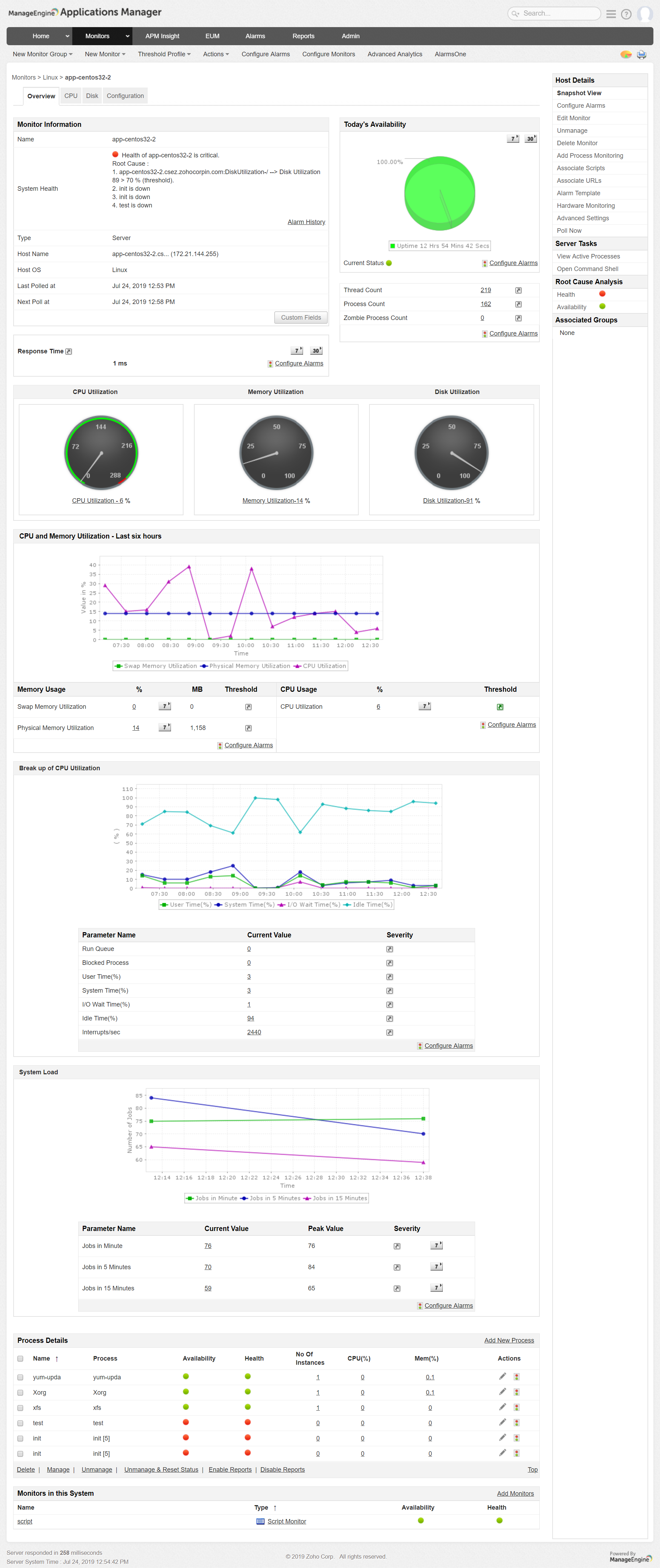 Applications Management, along with Server Management, enables an IT administrator to identify whether a problem reported is caused by the underlying operating system, the application or a service. This will help make effective changes in the resources quickly and reduce application bottlenecks.