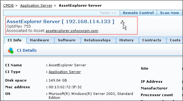 In ManageEngine AssetExplorer, all the CIs are represented with a Relationship Map