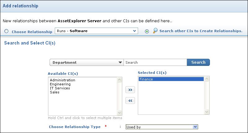 2. Select the nature of relationship between the CIs from Choose Relationship Type drop down.