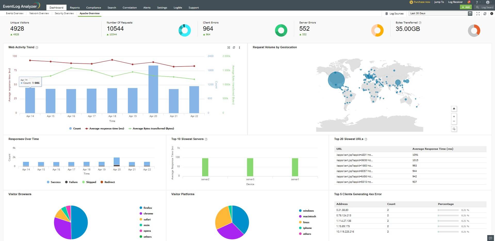 EventLog Analyzer helps you collect and analyze logs from different sources such as servers, network devices, and applications. The solution provides actionable intelligence that helps security teams stay on top of security threats in the organization.