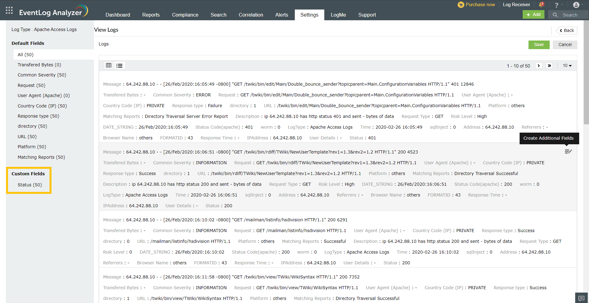 Importing additional fields in EventLog Analyzer
