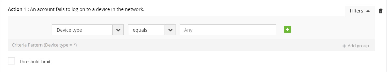 • To detect repetition of the same action within a particular time interval, tick the Threshold limit check box and enter the number of occurrences and time interval.