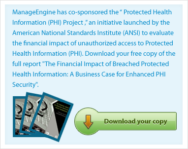 At over $60 billion per year, Medicare fraud has become one of the most profitable crimes in America, say analysts. In South Florida, health information fraud has replaced cocaine as the major criminal enterprise. As health care providers have fully turned digital with Electronic Health Records that contain protected health information, health information data breaches are also increasing in number, frequency and magnitude across the globe.Individuals tend to disclose the most intimate details about themselves to their doctors only with the trust that their health information will remain private and secure, whether it resides in a file at their doctor’s office, on a hospital chart, or in a claims form at their insurance provider. Protected Health Information (PHI) is being handled by a large number of stakeholders – physicians, therapists, clinics, hospitals, laboratories, pharmacists, insurers, insurance companies, law firms, telemedicine firms and other agencies. These stakeholders are responsible for the confidentiality, integrity, and availability of all PHI they create, receive, maintain, transmit, or store. This responsibility includes implementing appropriate safeguards against any reasonably anticipated threats or hazards to the security or integrity of that information. PHI - Threats & VulnerabilitiesThreats for protected health information emanate both from external attacks and internal sources. External Attacks – Health care enterprises come into contact with a variety of people in a variety of ways. Sensitive information and IT resources need to be exposed or shared with partners, agencies and even customers. All these make the enterprises vulnerable to data breaches and cyber-attacks from amateur and expert hackers. Internal Threats - Threat to information security does not always develop from outside. It could well be generating right inside the organization. Disgruntled staff, greedy techies, tech-savvy contractors and sacked employees could act with malicious intent and misuse privileged access. Even untrained staff could unintentionally unleash a disaster. The business and reputation of some of the world’s mightiest organizations have been shattered in the past by a handful of malicious insiders. Researchers point out that more than half of data breaches involve the participation of an insider, but only 10% are unintentional – whereas 90% are deliberate and malicious and usually involve misuse of privileges. How to combat?Preventing or detecting a breach requires that effective policies, procedures, and technologies are in place. Without proper technology in place, policies and procedures would remain ineffective and cannot be enforced. The CISOs, CIOs, IT security, privacy, and compliance personnel of health care organizations, who are tasked with the responsibility of protecting PHI should keep in mind the fact that the benefits of investing in technologies to prevent PHI breach, far more outweigh the potential cost involved in setting them up. ManageEngine is here to help!Combating sophisticated cyber threats involving protected health information mandates a multi-pronged strategy incorporating a complex set activities including deploying security devices, enforcing security policies, controlling access to resources, monitoring events, analyzing logs, detecting vulnerabilities, managing patches, tracking changes, ensuring compliance, monitoring traffic and other activities. ManageEngine has a range of affordable Enterprise Security Management Software Solutions that help you build a secure fortress enabling you to protect PHI, stay secure, ensure business continuity and enhance producvity.