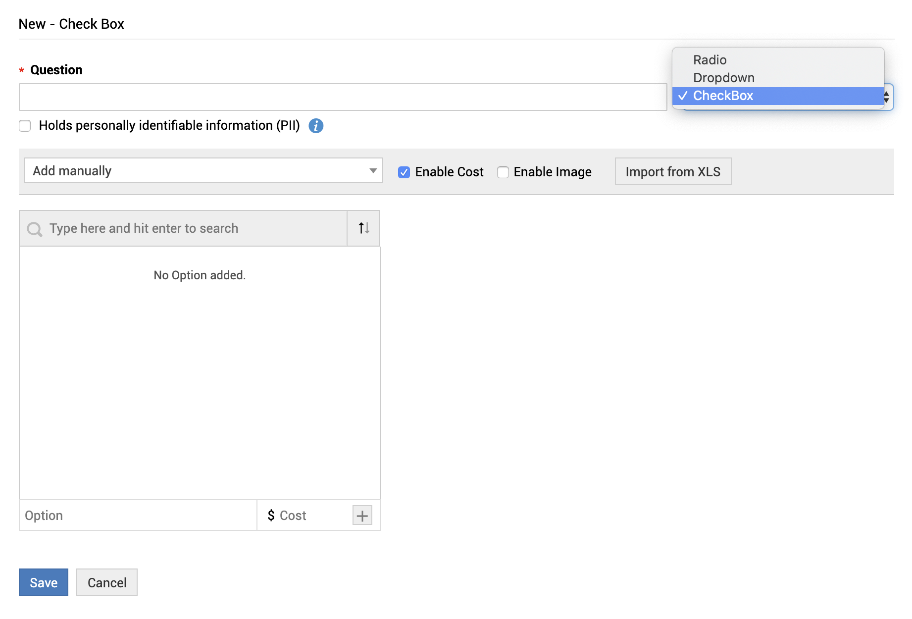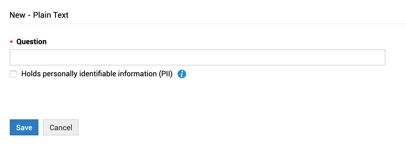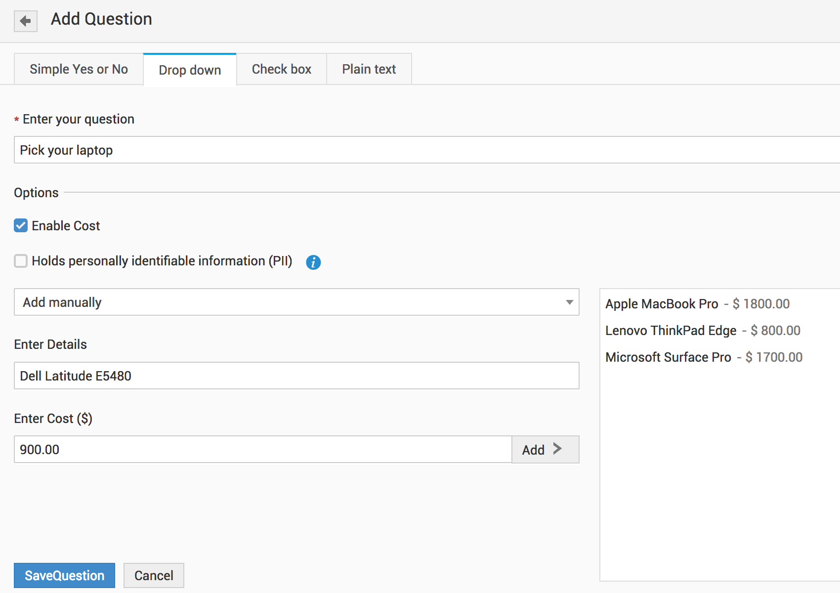 • Depending on the type fill in the question details and click Save.
