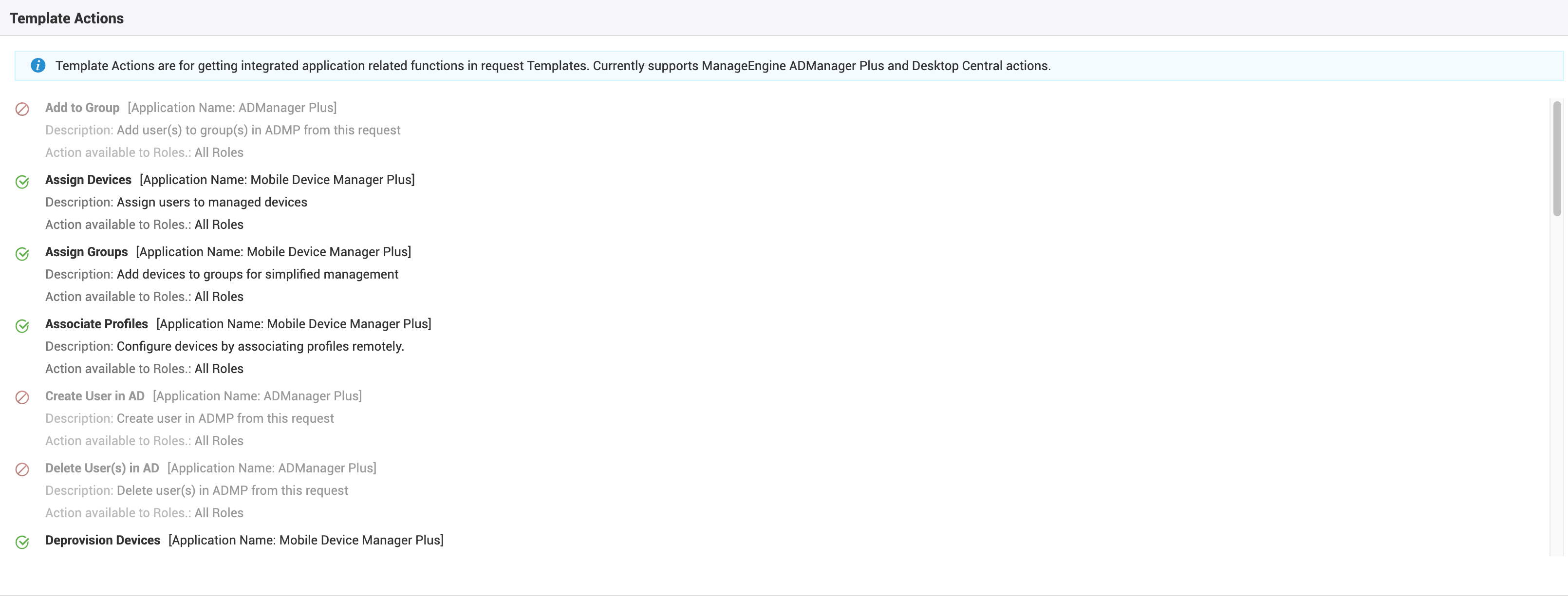 To avail this functionality, configure the Server Name and Port number of the Endpoint Central (Formerly Desktop Central) server in SDP application. Since all service requests do not require Endpoint Central (Formerly Desktop Central) operations, this activity is limited by providing a Template Action check box in each service item form. This functionality is attainable only when Endpoint Central (Formerly Desktop Central) 7.0 and above is integrated with SDP. Refer Endpoint Central (Formerly Desktop Central) Integration to know more.