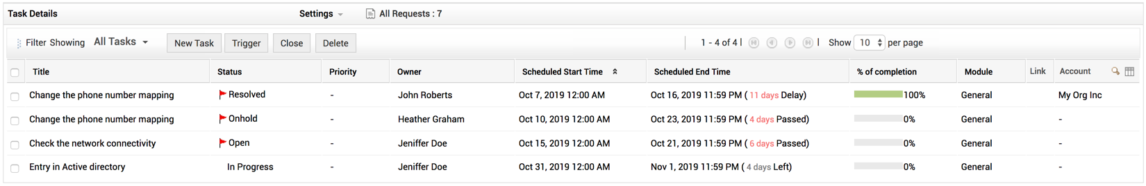 Using the pre-defined filters in the Task details page, you can have a quick consolidated view of the tasks configured in the application.