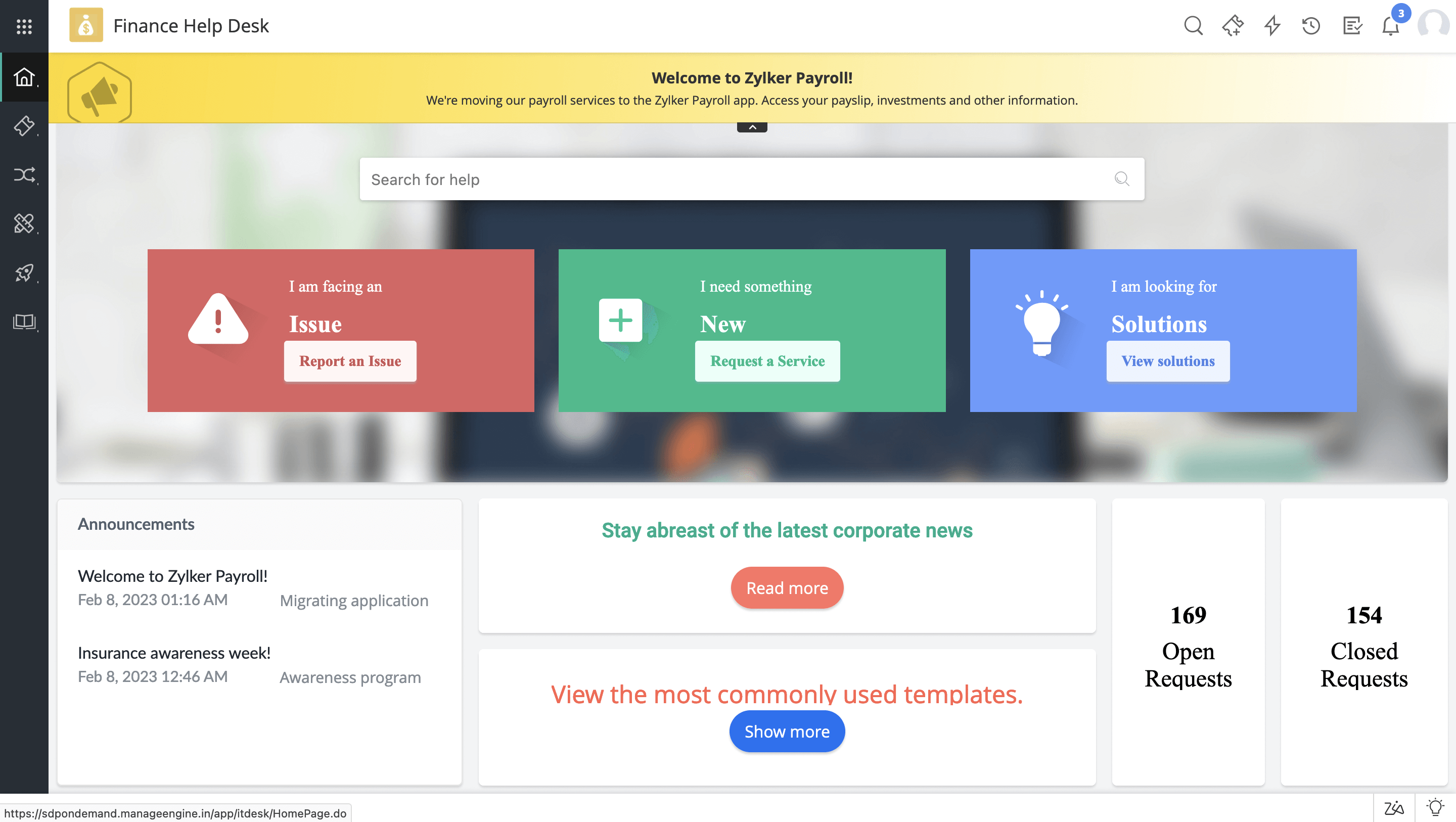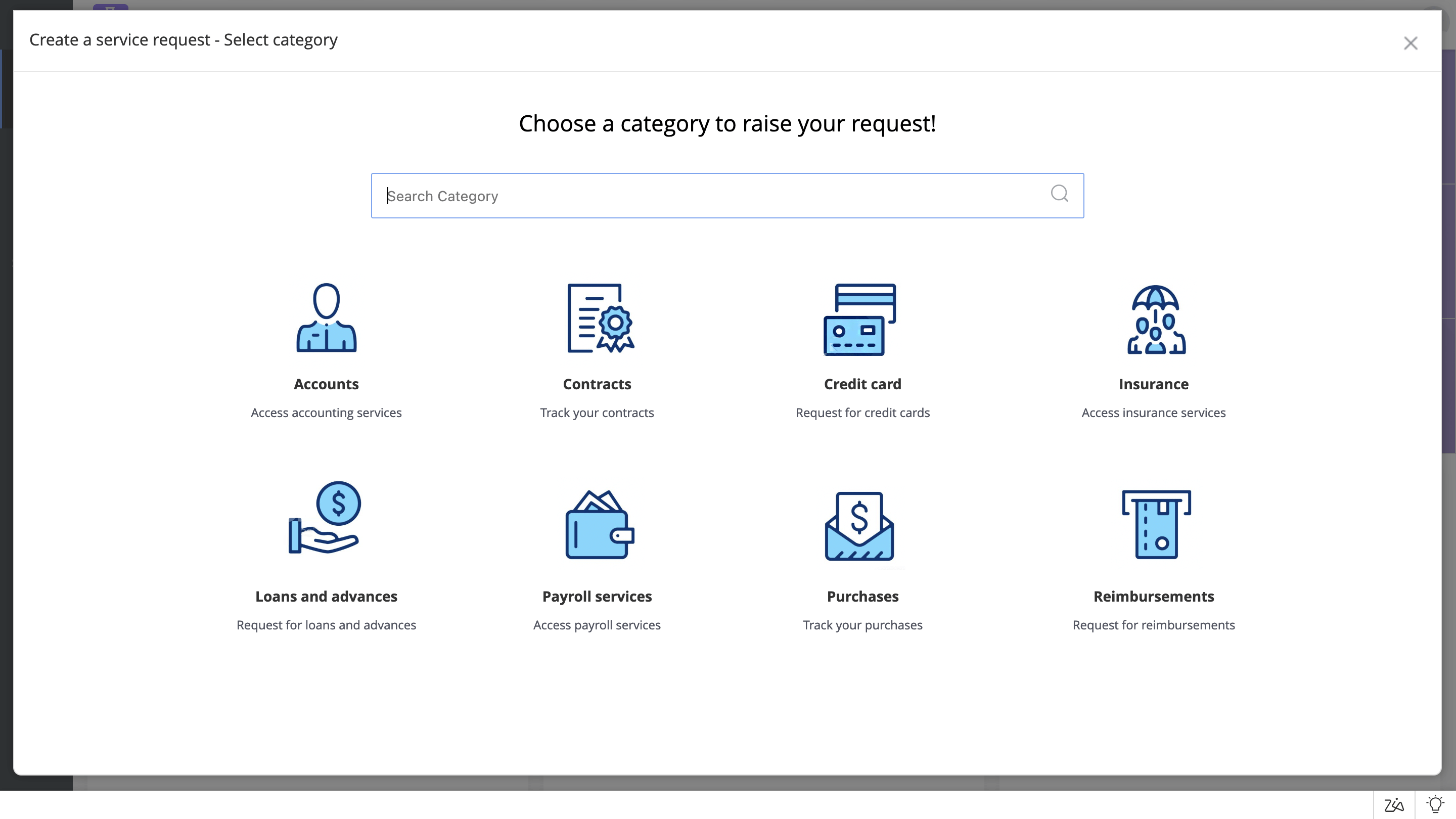 Financial teams are the cornerstone of your organization, fueling strategic decisions to align business functions with organizational goals. They are one of the foremost teams to embrace digital transformation. However, they rely on disparate tools to manage multiple financial processes, like budgeting, accounting, billing, and invoicing. Furthermore, information is dispersed across departments, so finance teams struggle with data silos. For instance, when employees raise finance requests to explore entitlements like credit eligibility, finance teams might not be able to furnish the information on time. The finance teams may also be unaware of the priority of such requests. Moreover, they have to reach out to the HR teams to gather relevant details about the reporting managers of the employees to ensure the approval of finance requests. This causes unresponsive service delivery and an unsatisfactory user experience.