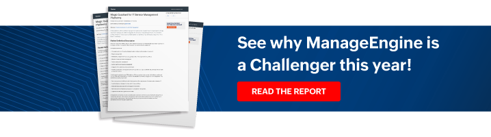 These factors led to a high adoption of the ServiceDesk Plus platform in 2021, resulting in ManageEngine being recognized as a Challenger in this Magic Quadrant report.