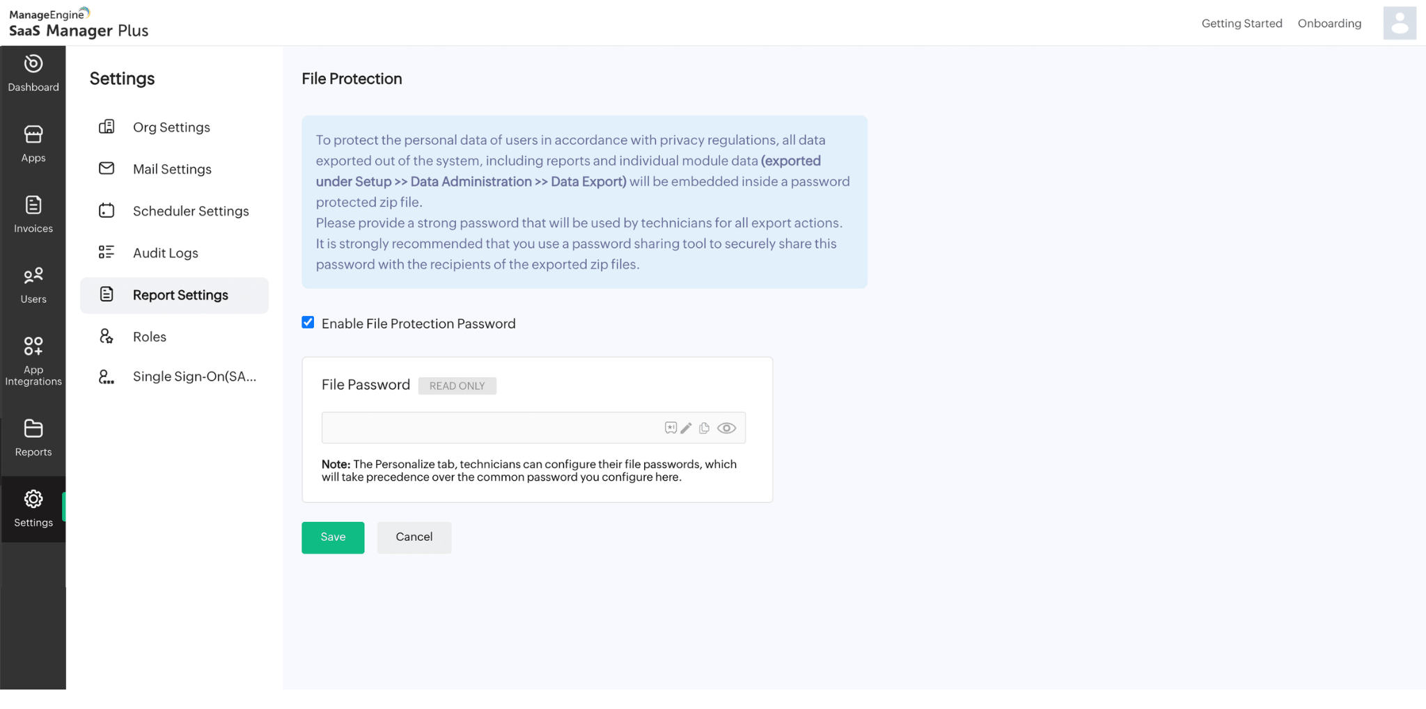 The Report Settings section allows you to customize settings related to report exports and email notifications.