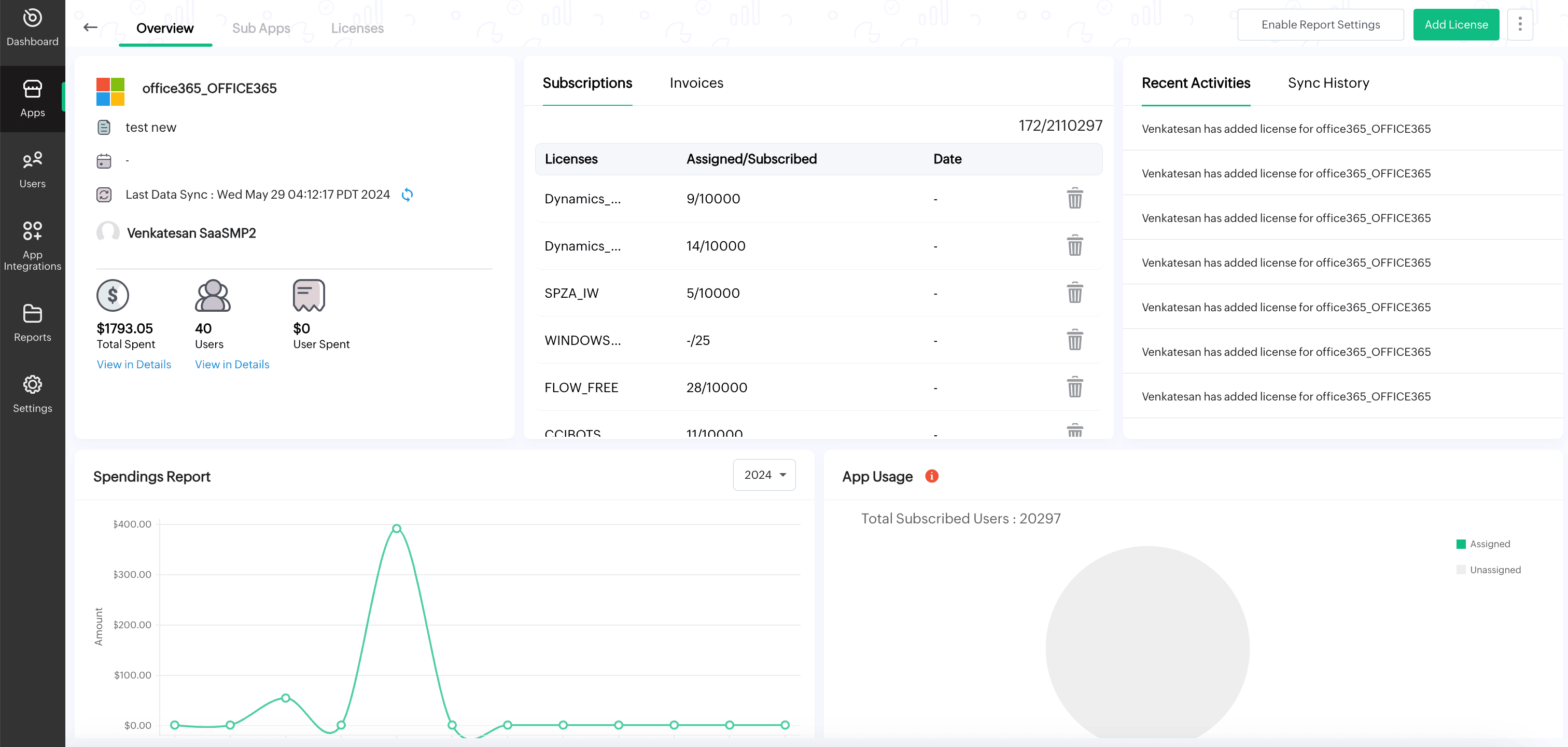 License and user management: Track and manage licenses and users to avoid overspending on unused or underutilized applications and cut costs on stale users.