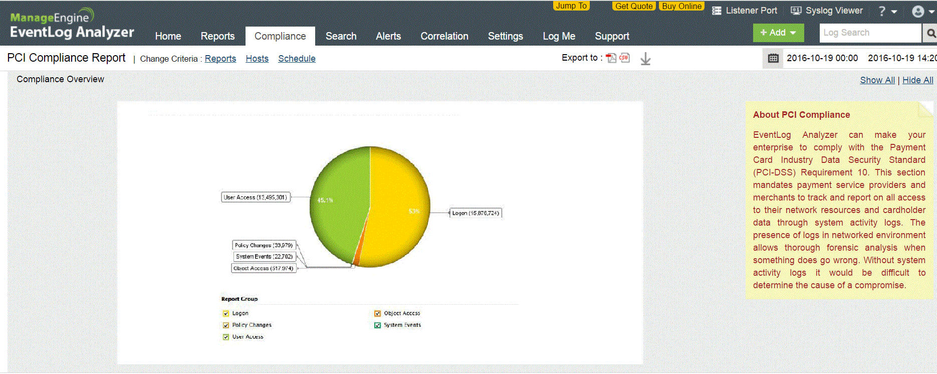 PCI DSS-nalevingsrapporten van EventLog Analyzer