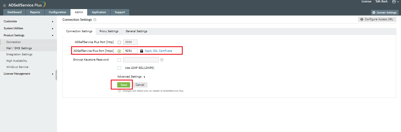 Stap 1: HTTPS inschakelen in ADSelfService Plus