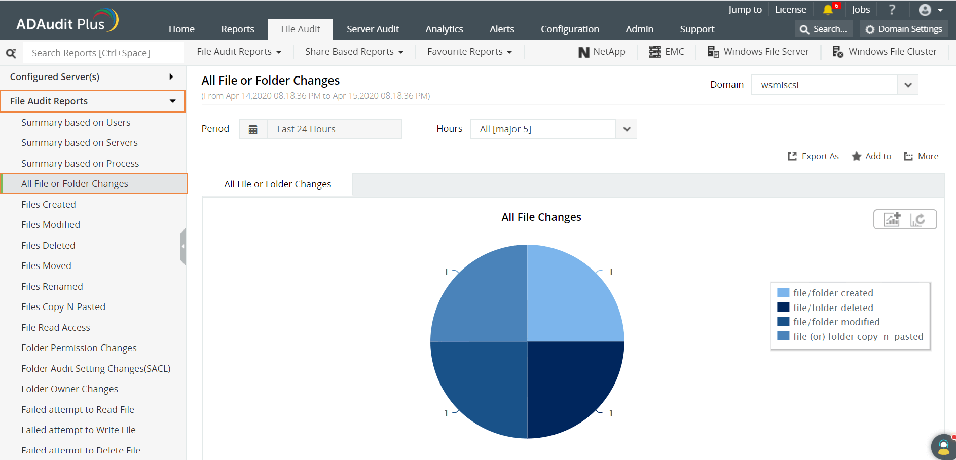 - Navegue até Auditoria de arquivos -> Relatórios de auditoria de arquivos -> Todas as alterações de arquivos ou pastas.